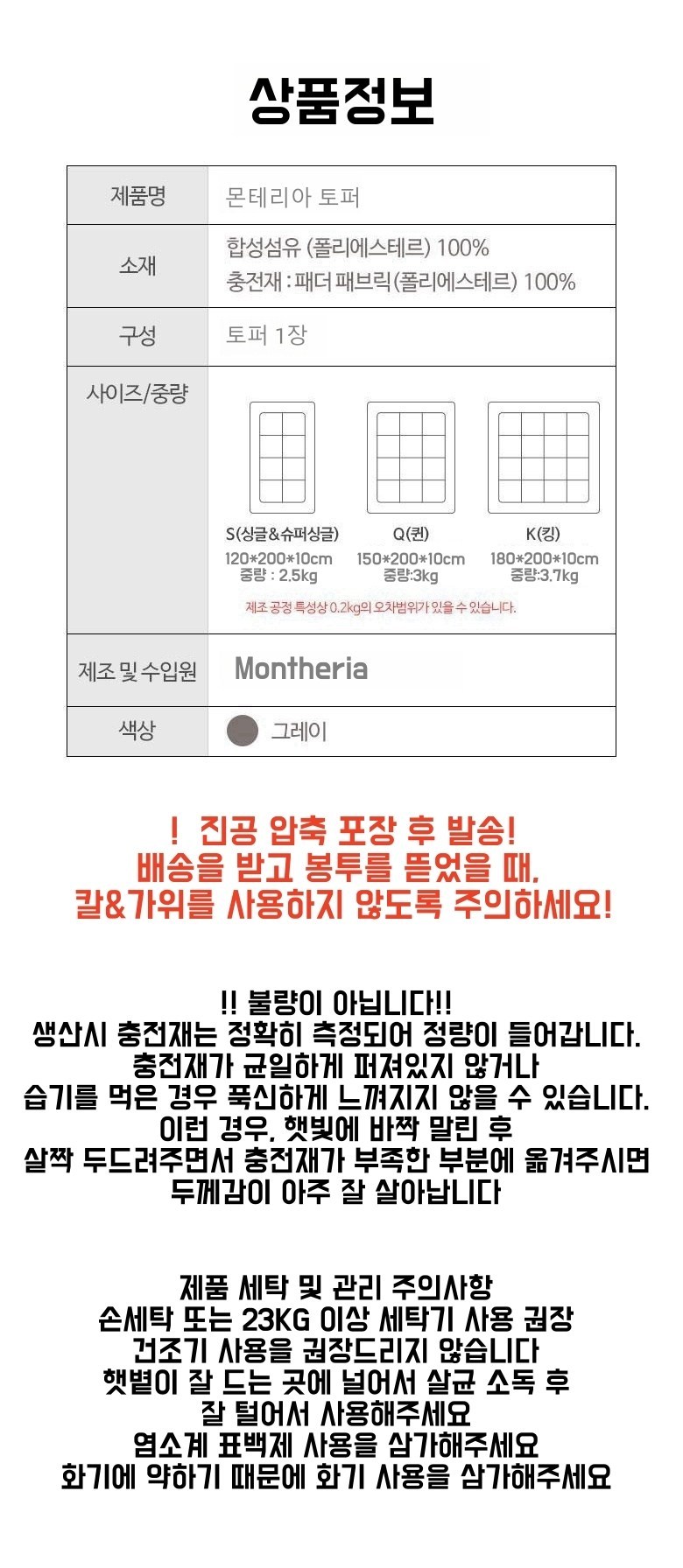| 제조국(원산지) | 상품 상세페이지 참조 | 제조자(수입자) | 몬테리아 |