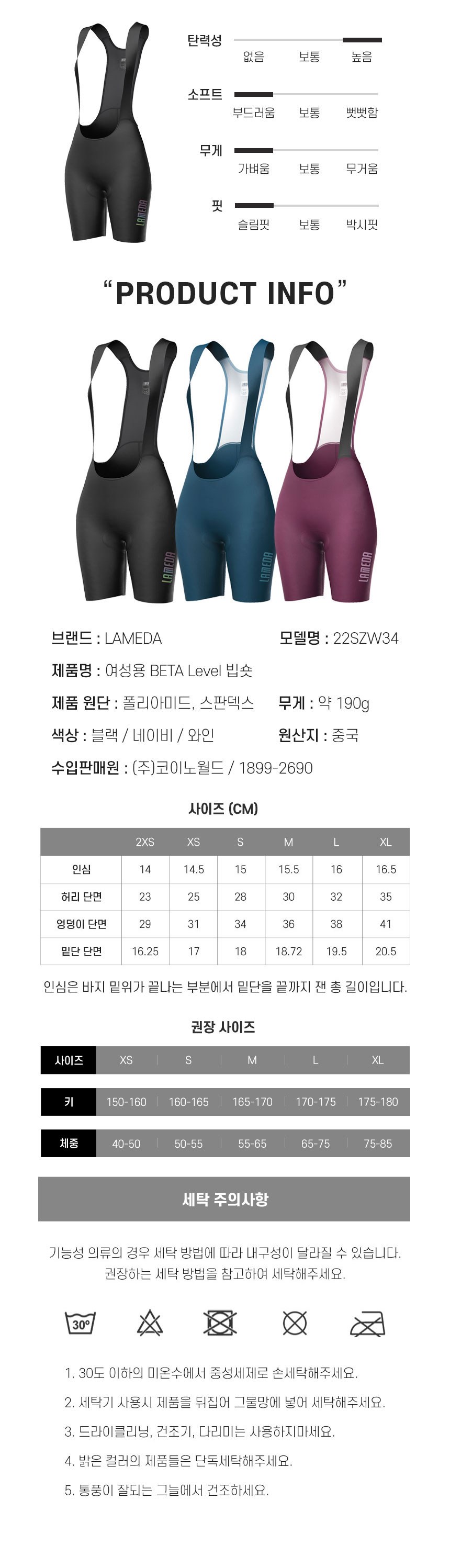 | 품명 및 모델명 | 라메다 여성용 BETA Level 자전거 빕숏 22SZW34 | KC 인증정보 | 해당없음 |