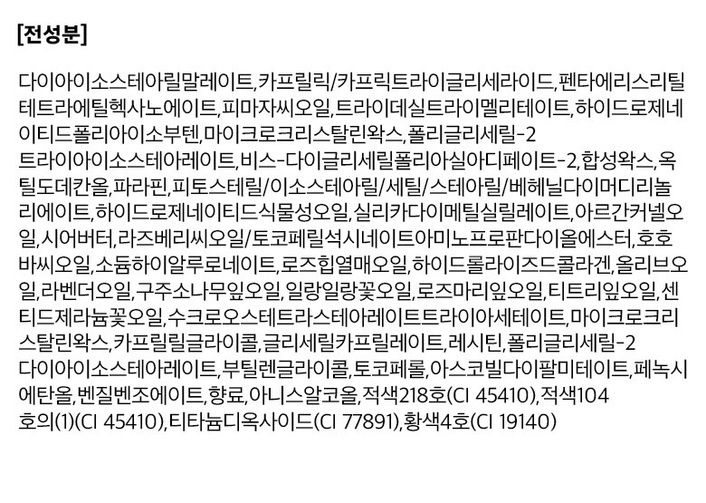 | 화장품제조업자, 화장품책임판매업자 및 맞춤형화장품판매업자 | 컨텐츠 참조 | 제조국 | 한국 |