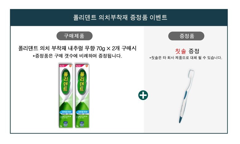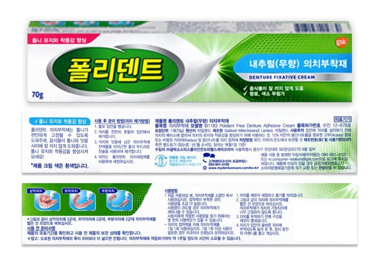 | 품명 및 모델명 | 폴리덴트 의치부착재 크림 70g 내추럴(무향) | 허가∙인증∙신고번호 (의료기기법에 따른 허가∙인증∙신고 대상 의료기기에 한함) | 수인 12-678호 |
