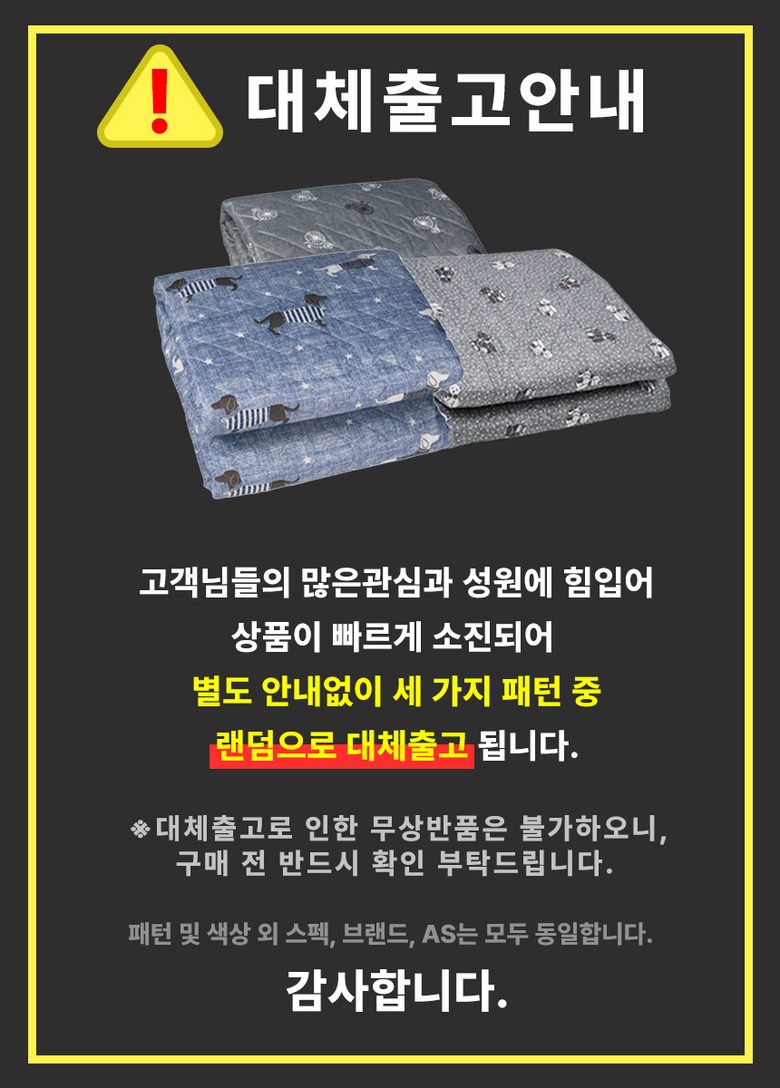 - ㆍ모니터 해상도의 차이로 인해 색상이나 이미지가 실제와 달라, 고객이 단순 변심으로 교환/반품을 무료로 요청하는 경우