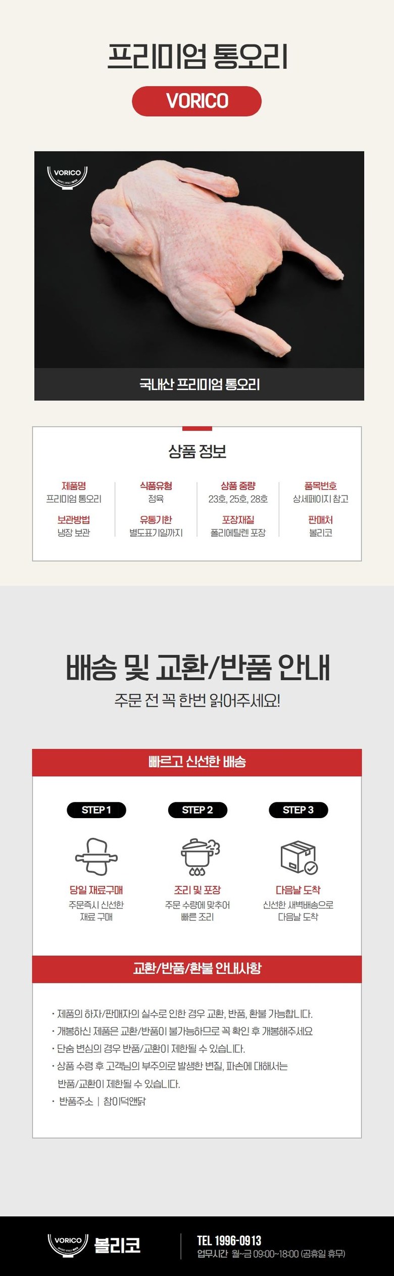 | 품목 또는 명칭 | 국내산 통오리 백숙 생오리 | 포장단위별 내용물의 용량(중량),수량,크기 | 23호,25호,28호 |