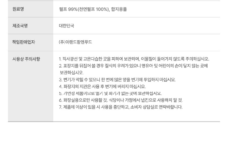 부드러운 천연펄프 3겹으로 쉽게 찢어지지 않아 안심하고 사용할 수 있습니다.