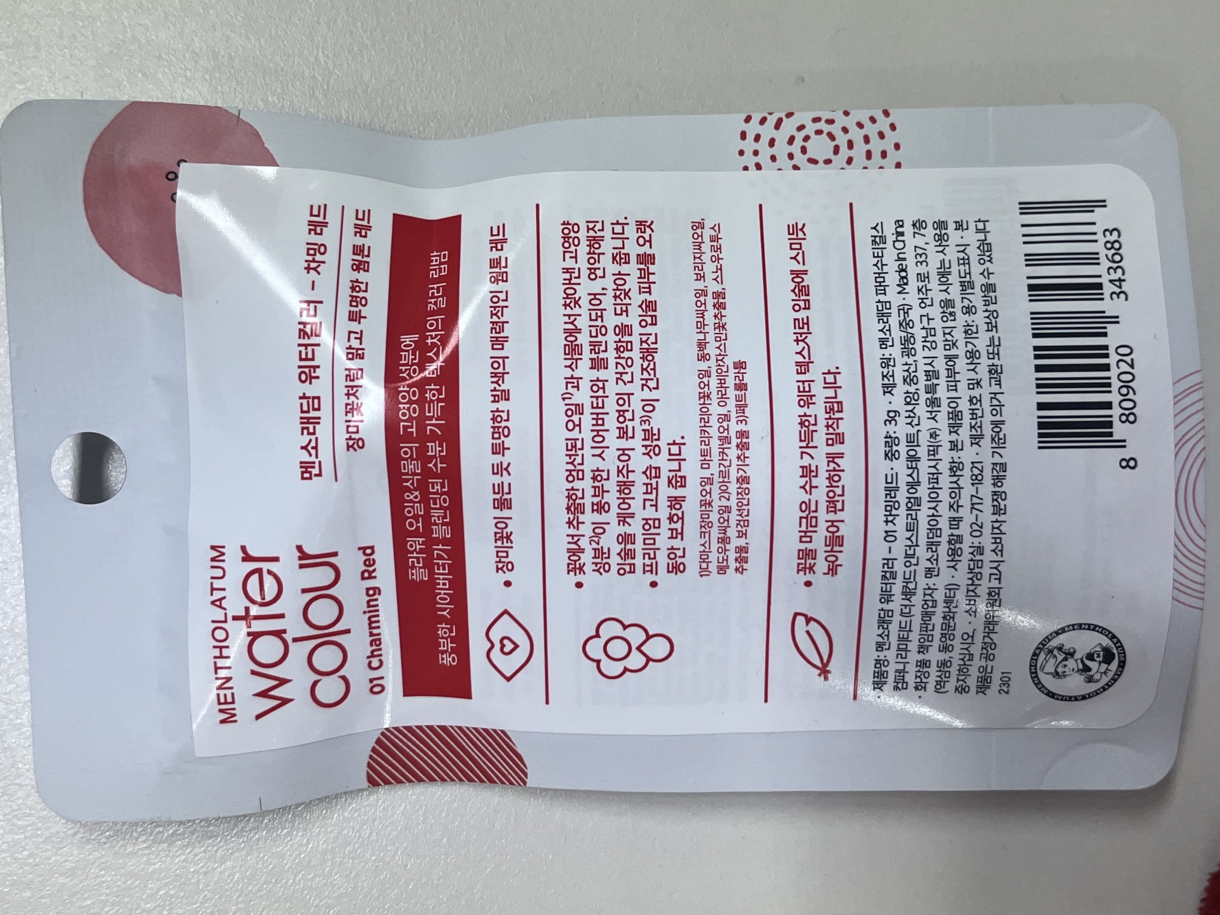 | 사용기한 또는 개봉 후 사용기간 | 본 상품은 해당 물류센터 직발송 상품인 관계로 제조연월일 및 사용기한 정보가 매번 변경되므로 상단 사용기한 정보를 참고해 주세요. | 사용방법 | 입술에 부드럽게 발라줍니다. |