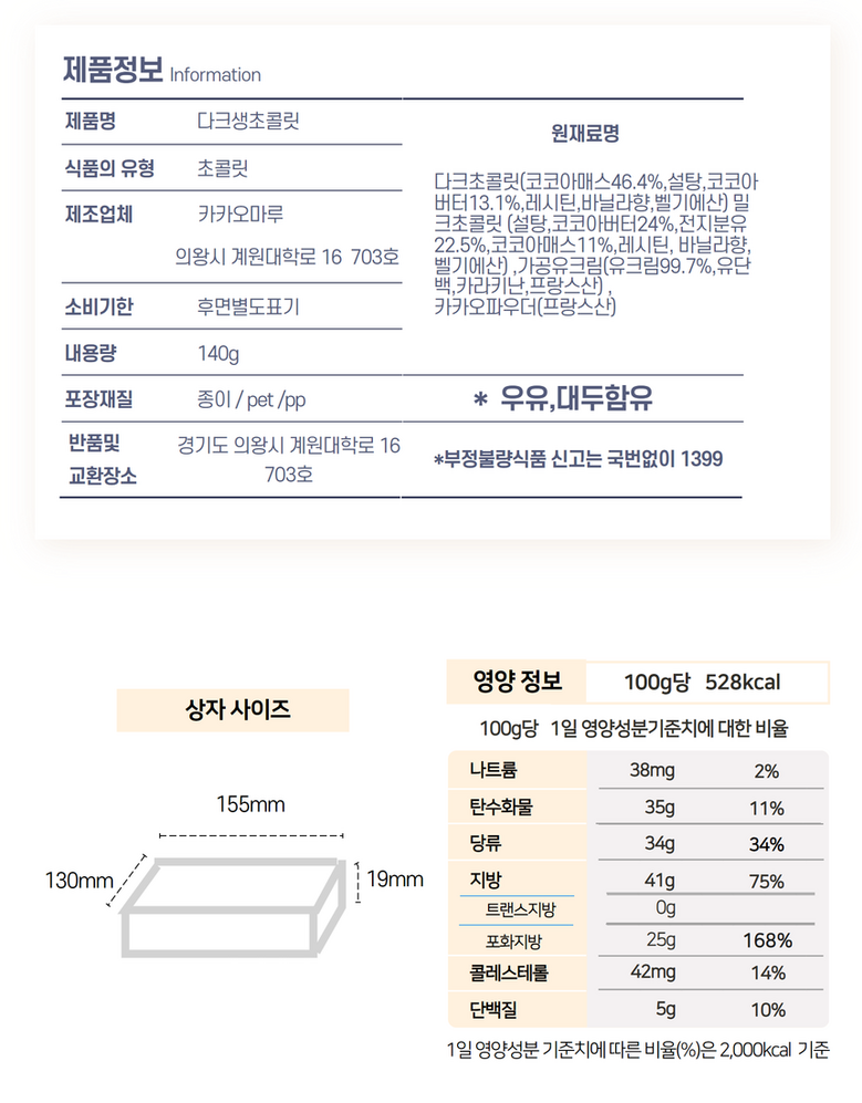 | 제품명 | 상품 상세페이지 참조 | 식품의 유형 | 상품 상세페이지 참조 |