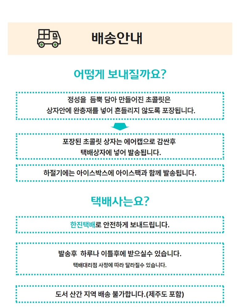 | 배송방법 | 순차배송 | 배송비 | 무료배송 · 도서산간 추가 배송비 - 제주 지역: 4,000원 - 도서산간 지역: 6,000원 |