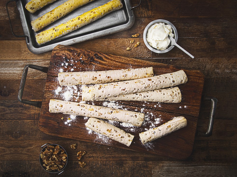 고소한 풍미가 매력적인 크림치즈 호두빵을 생지로 간편하게 만들어보세요. 부드러운 크림치즈로 속을 채운 다음, 오독오독한 호두를 토핑으로 얹었어요. 오븐에 넣고 굽기만 하면 먹음직스러운 빵을 손쉽게 완성할 수 있답니다. 흰 우유를 곁들여 담백한 간식으로 즐겨보세요.