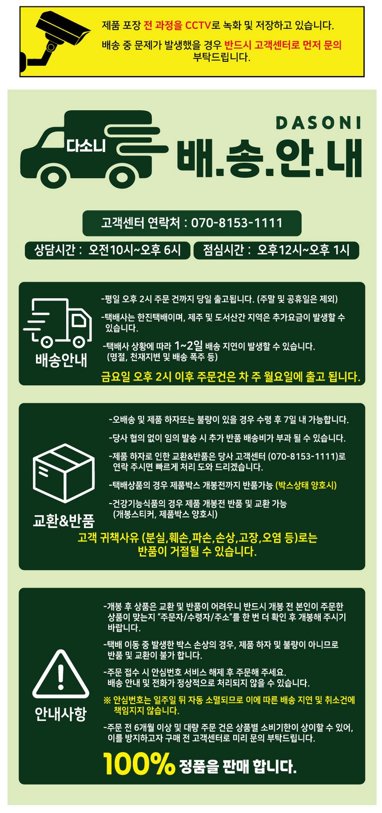 - ㆍ모니터 해상도의 차이로 인해 색상이나 이미지가 실제와 달라, 고객이 단순 변심으로 교환/반품을 무료로 요청하는 경우