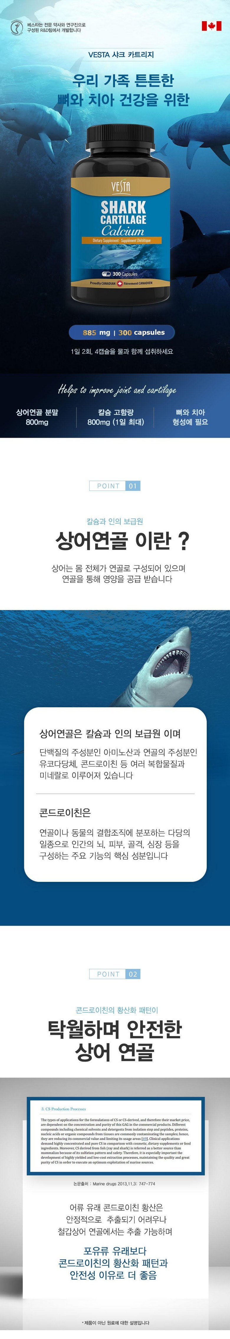 상어연골 분말, 칼슘, 캐나다 현지 제조