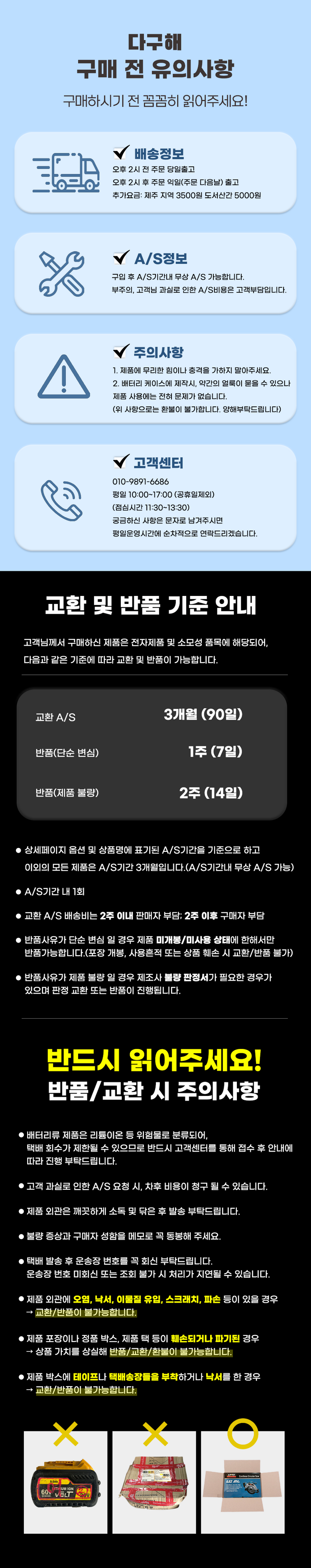 - ㆍ교환/반품에 관한 일반적인 사항은 판매자가 제시사항보다 관계법령이 우선합니다.