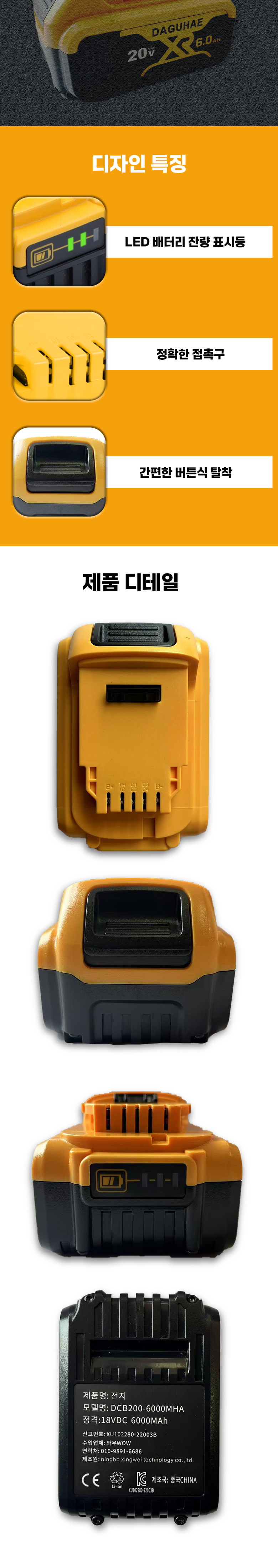 - 배터리 탈착: 탈착형
