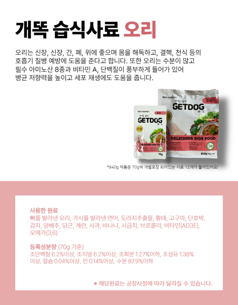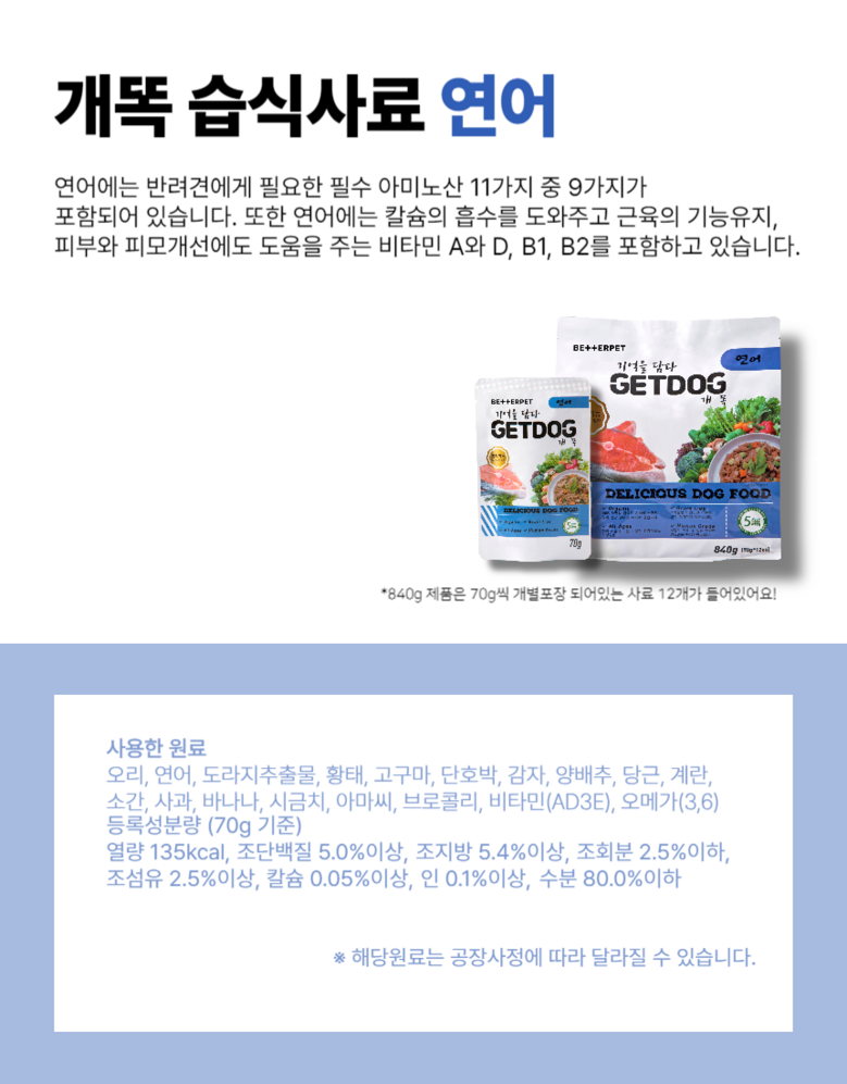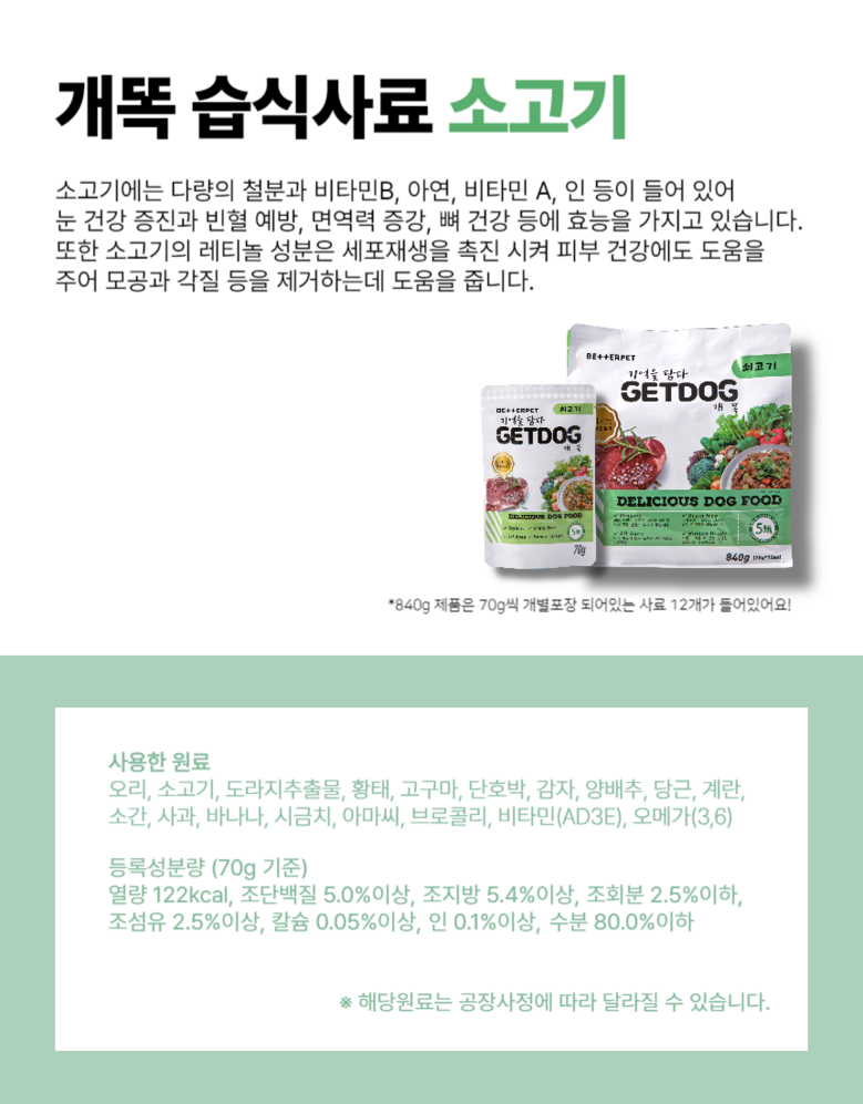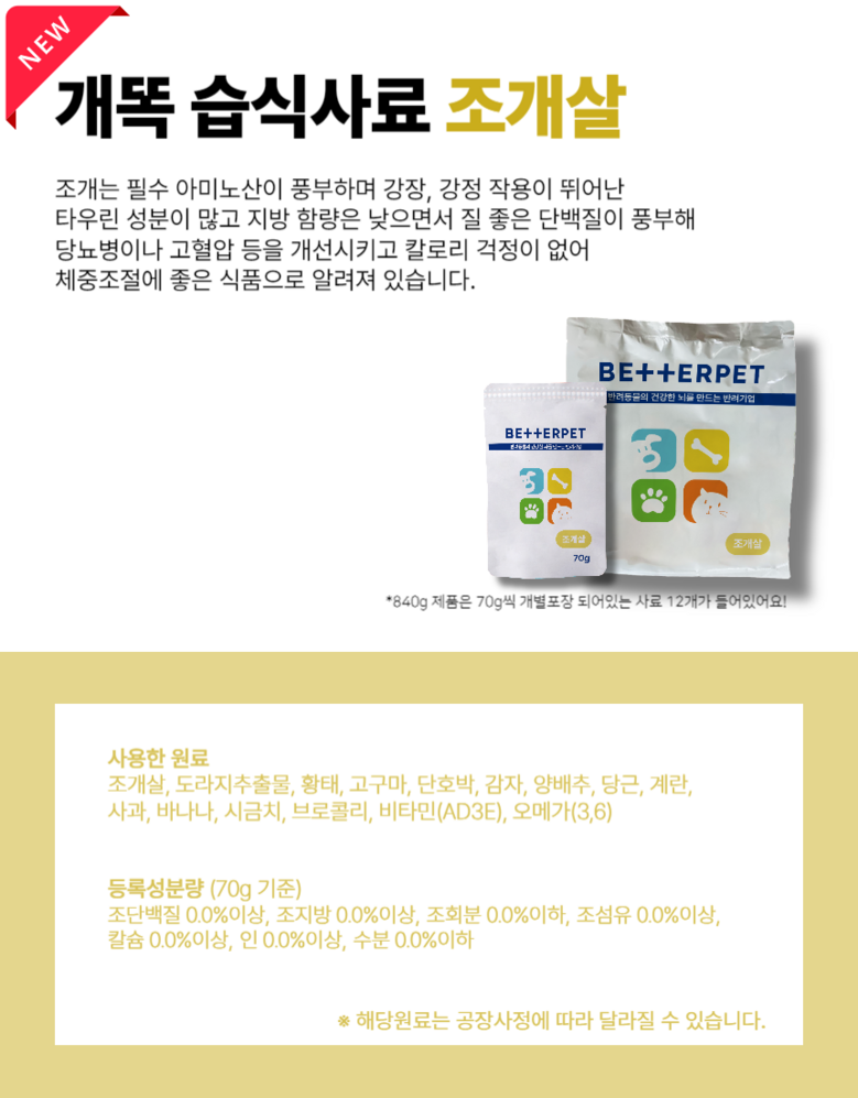 | 품명 및 모델명 | 베러펫 개똑 강아지습식사료 강아지사료 주식 보양식 파우치 12개입 | 인증/허가 사항 | 해당사항 없음 |