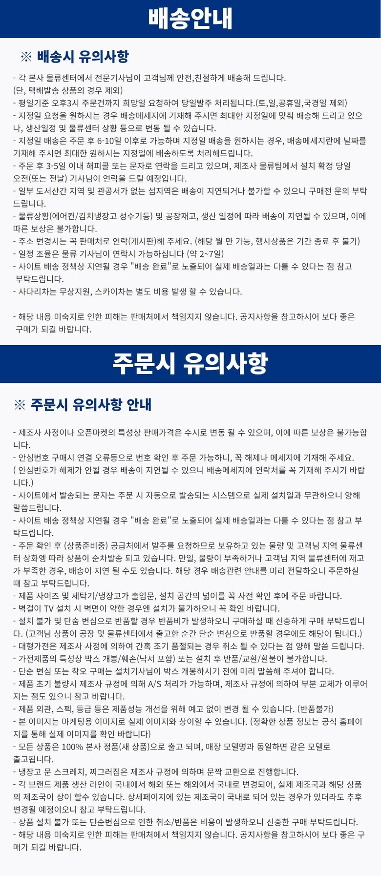 - ㆍ교환/반품에 관한 일반적인 사항은 판매자가 제시사항보다 관계법령이 우선합니다.