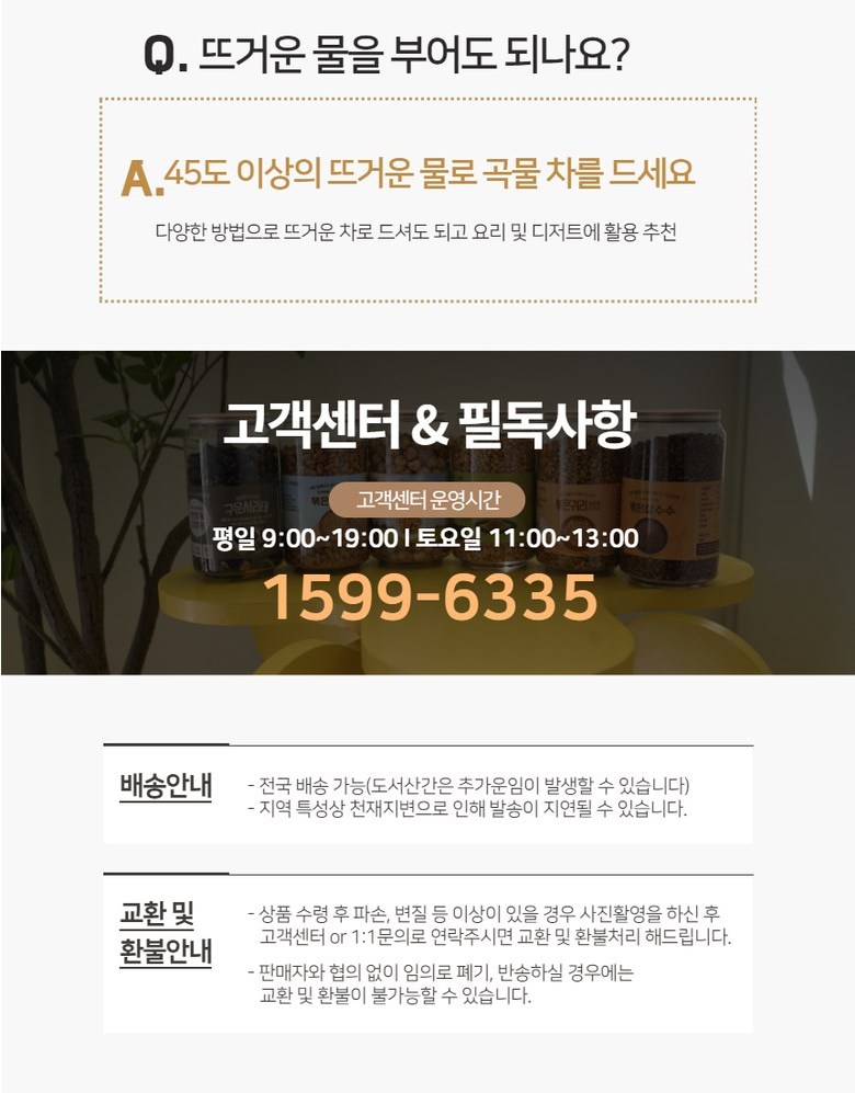 | 소비자상담 및 교환반품 문의 | 쿠팡고객센터 1577-7011 배송 및 환불/교환에 대한 문의는 마이쿠팡-고객센터 내 상담하기를 이용해주세요. | ||