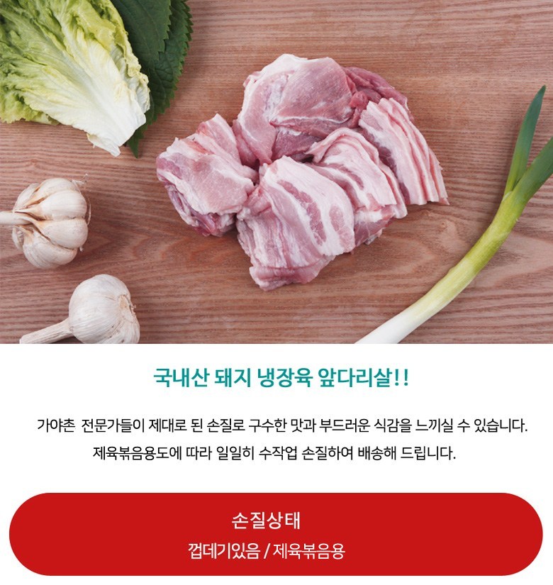 | 배송방법 | 신선/냉장/냉동 | 배송비 | 무료배송 - 도서산간 지역 배송불가 |