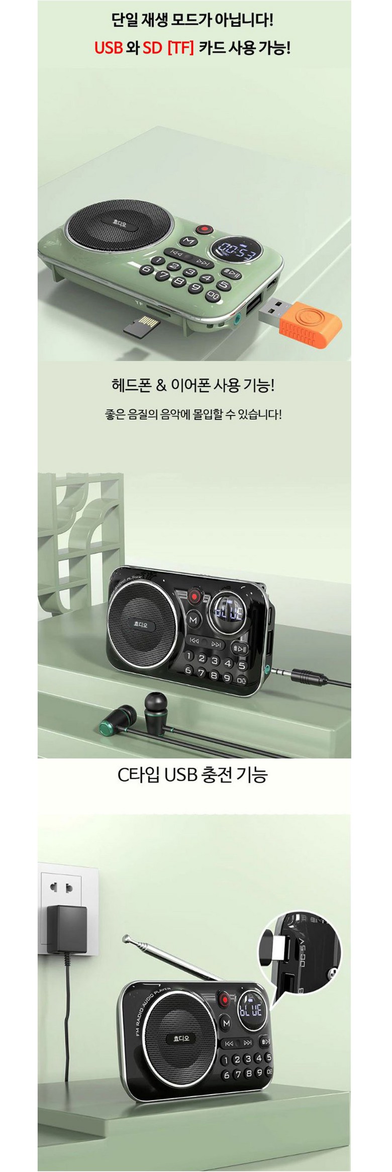 효디오 H-69 신제품 효도라디오 휴대용 소형 MP3 충전식 등산용 미니 트롯