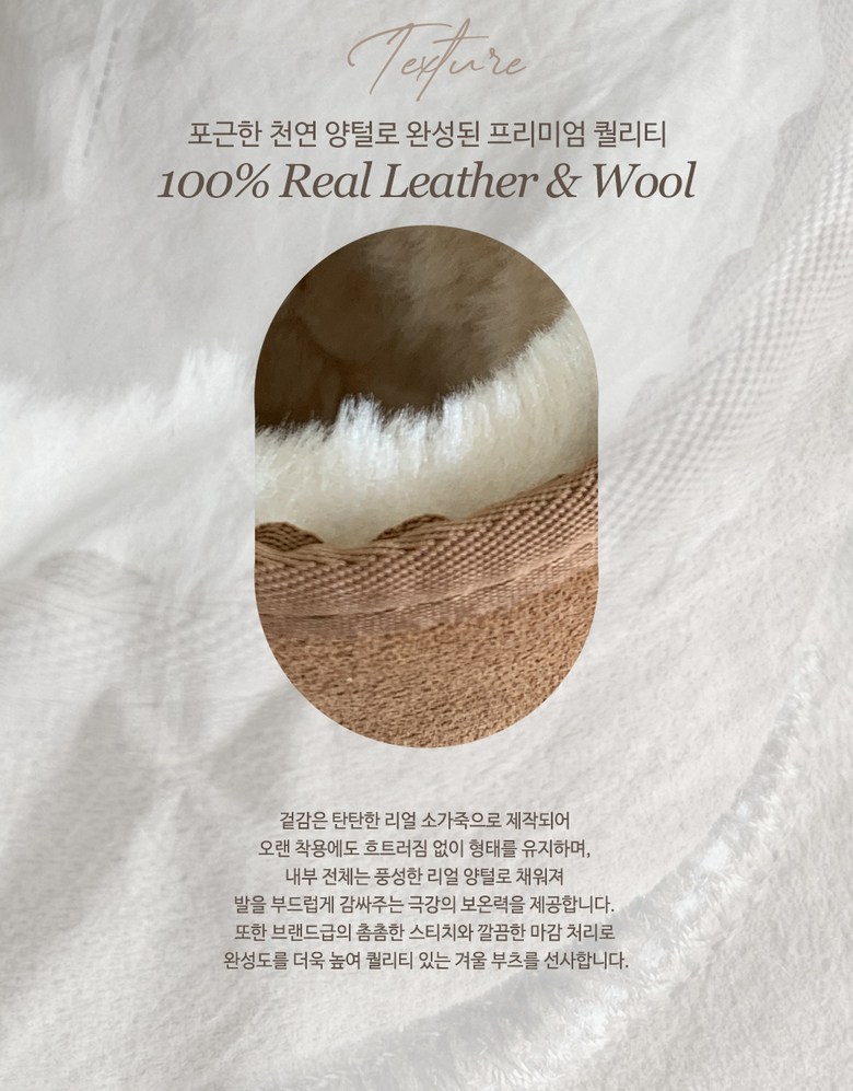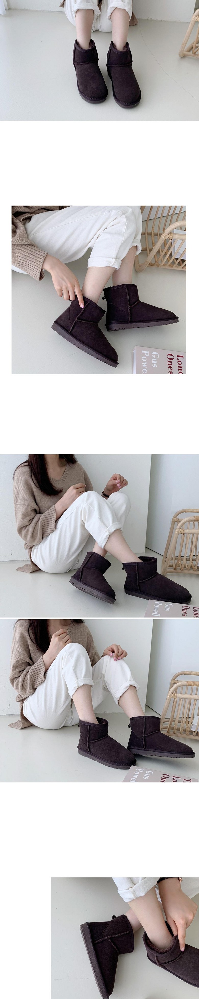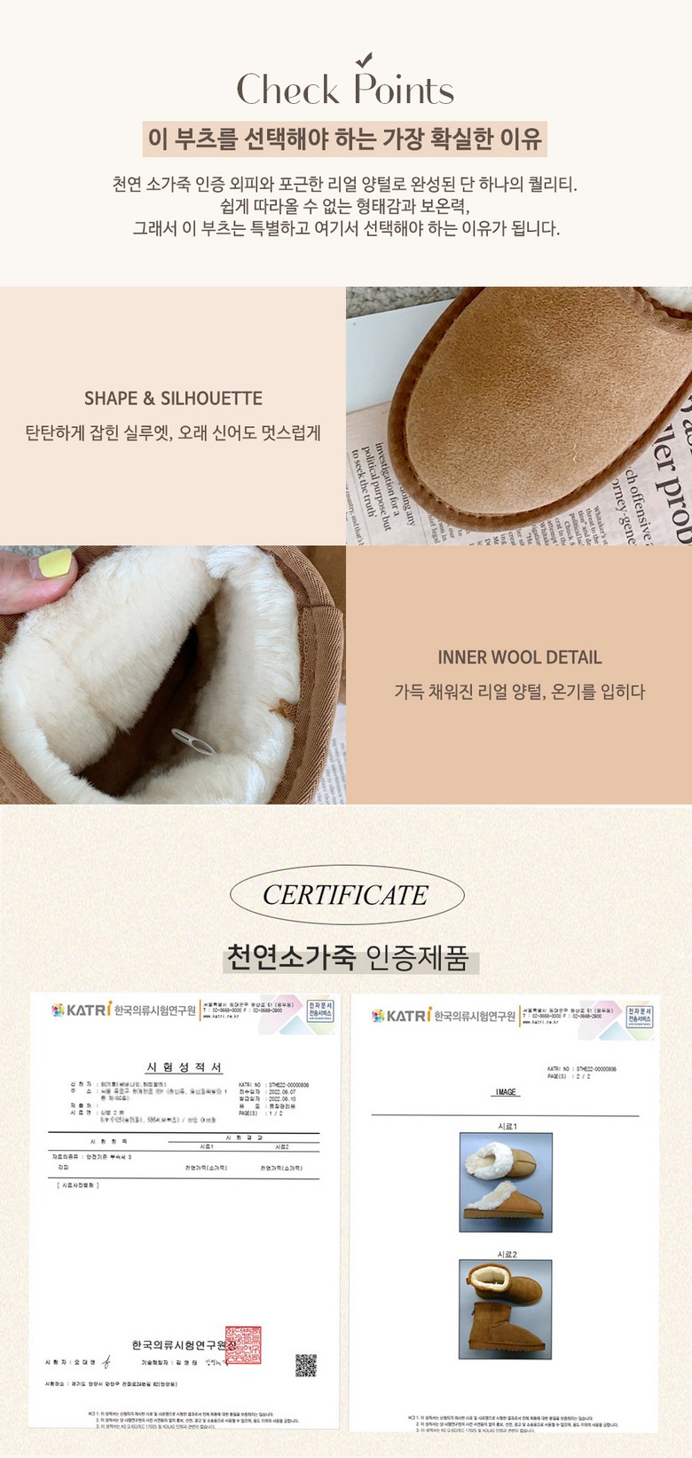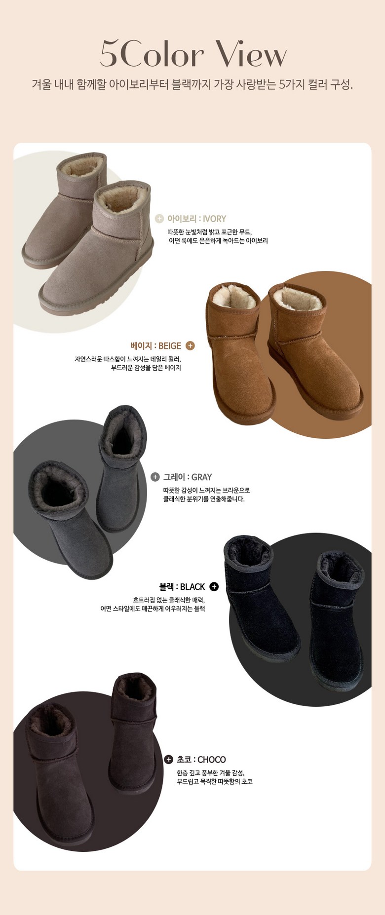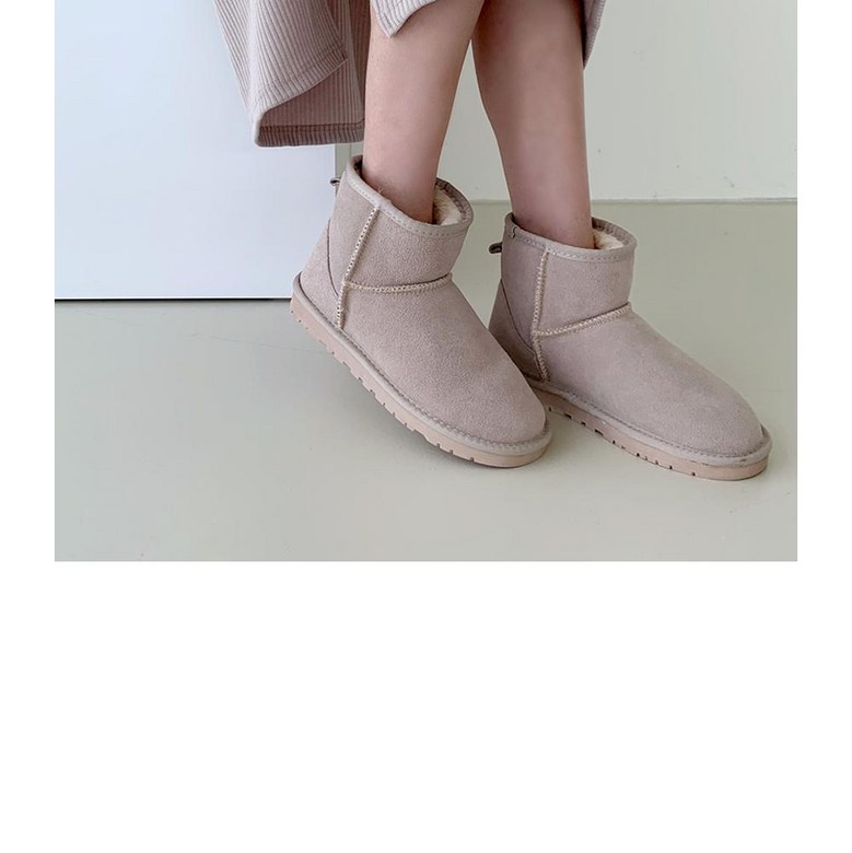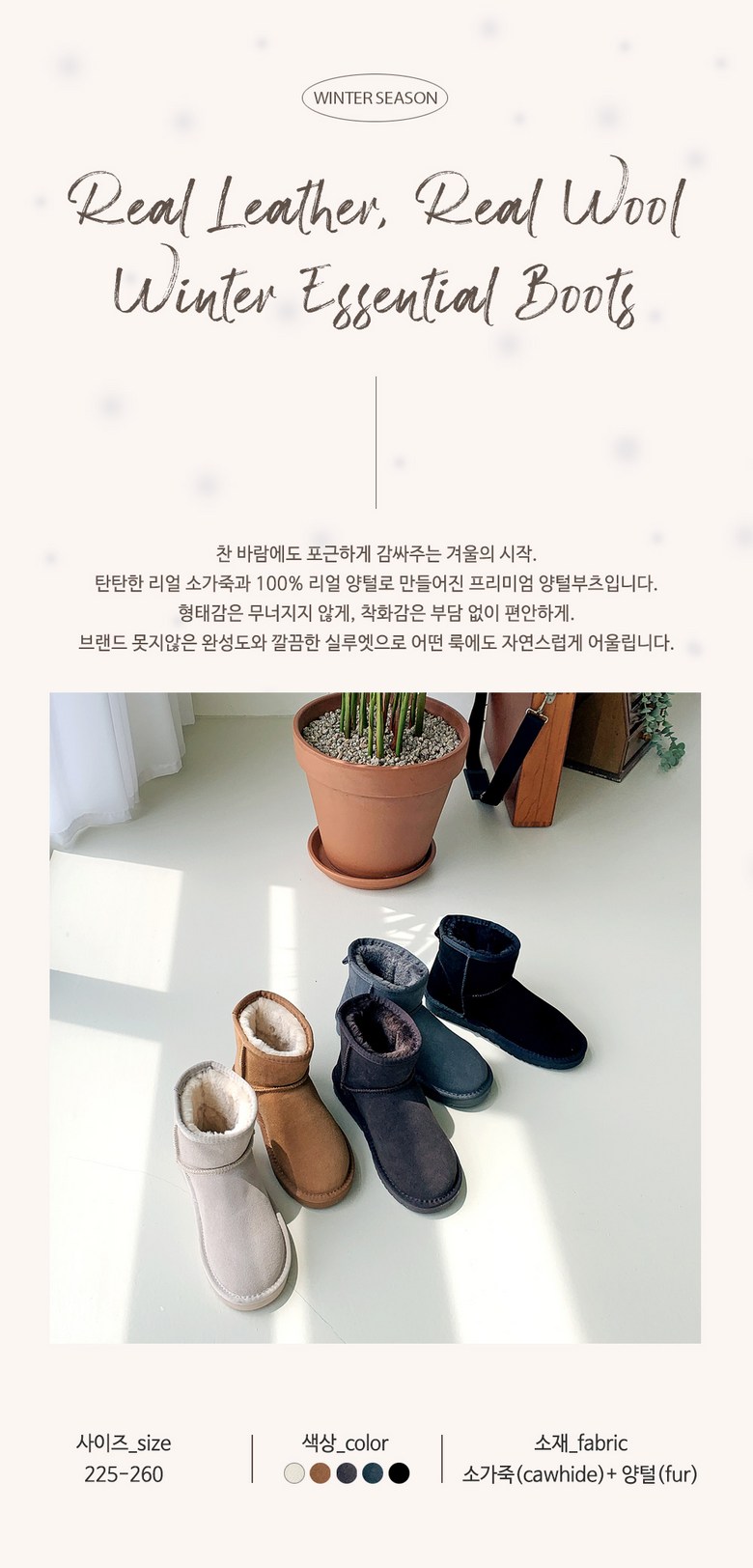 플라틴베이지 천연소가죽 양털 안감 숏 미니 부츠 방한화 (미끄럼방지)