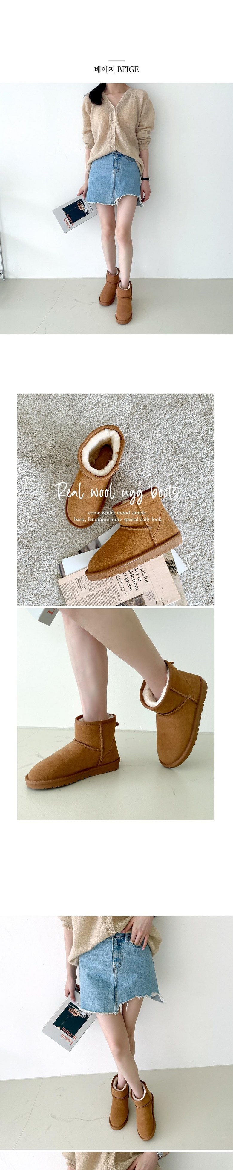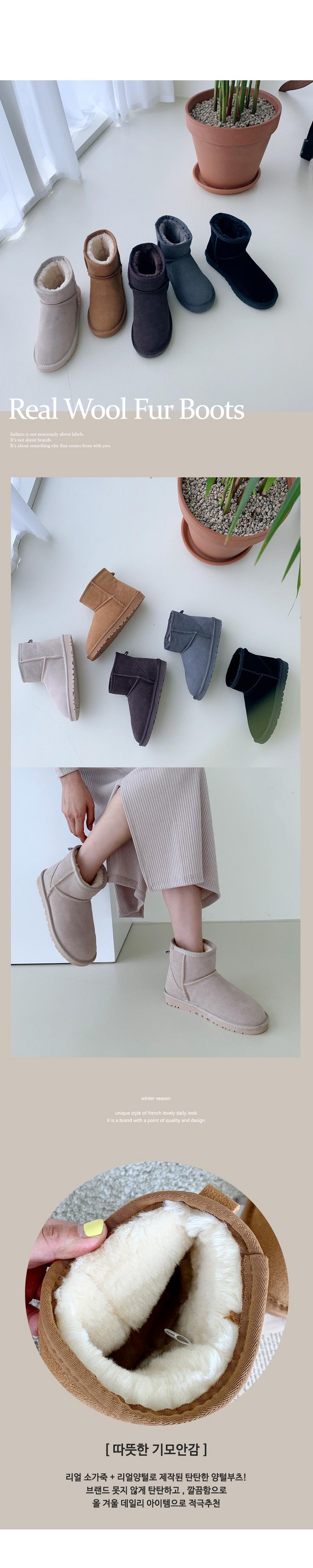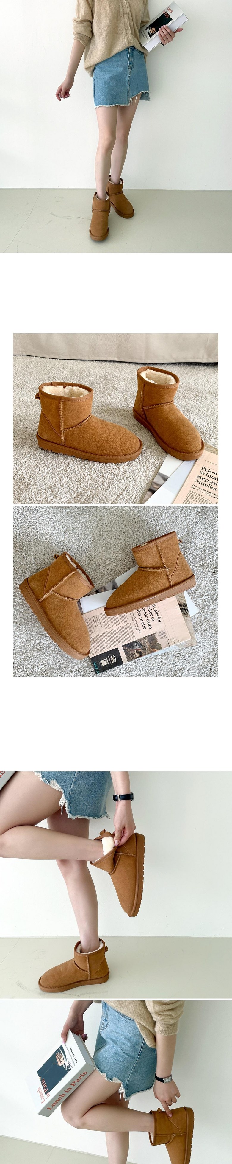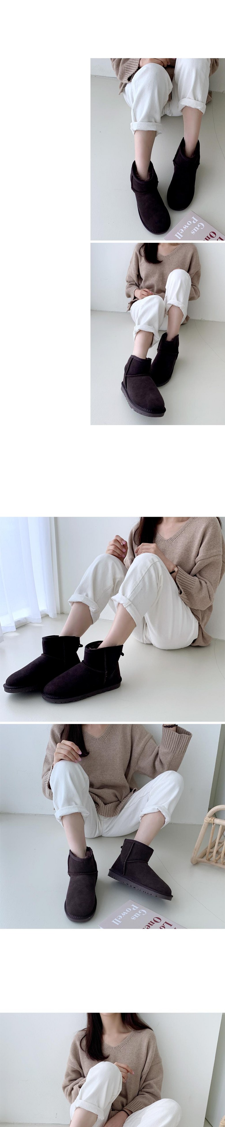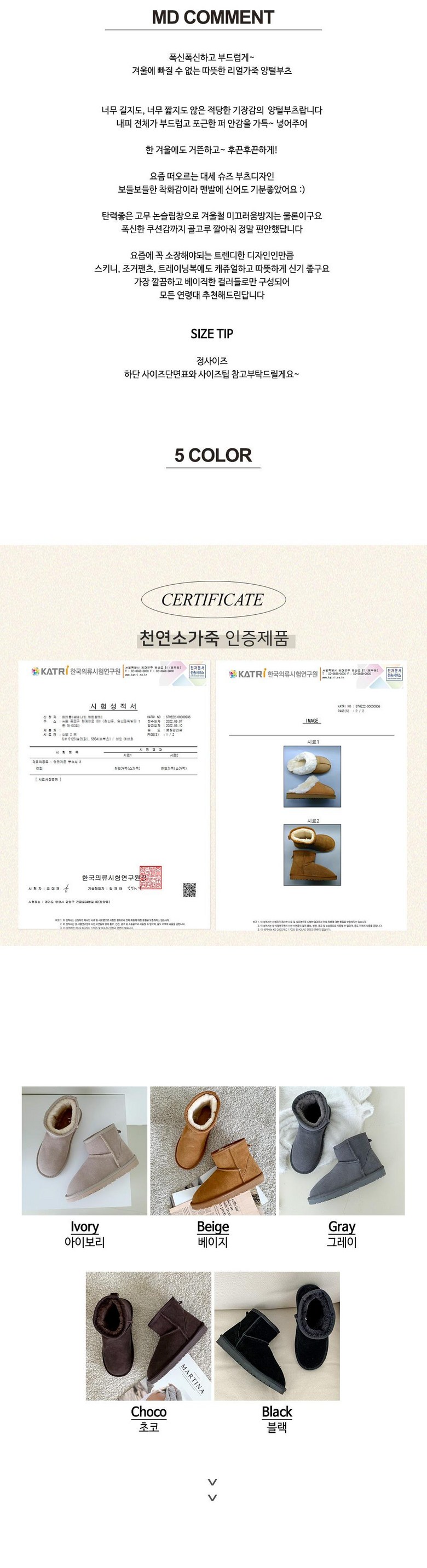 플라틴베이지 천연소가죽 양털 안감 숏 미니 부츠 방한화 (미끄럼방지)