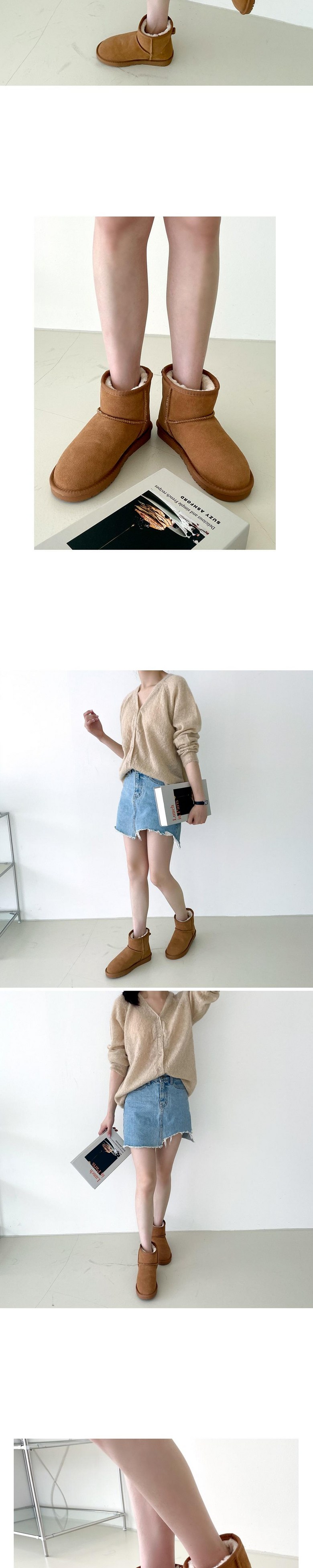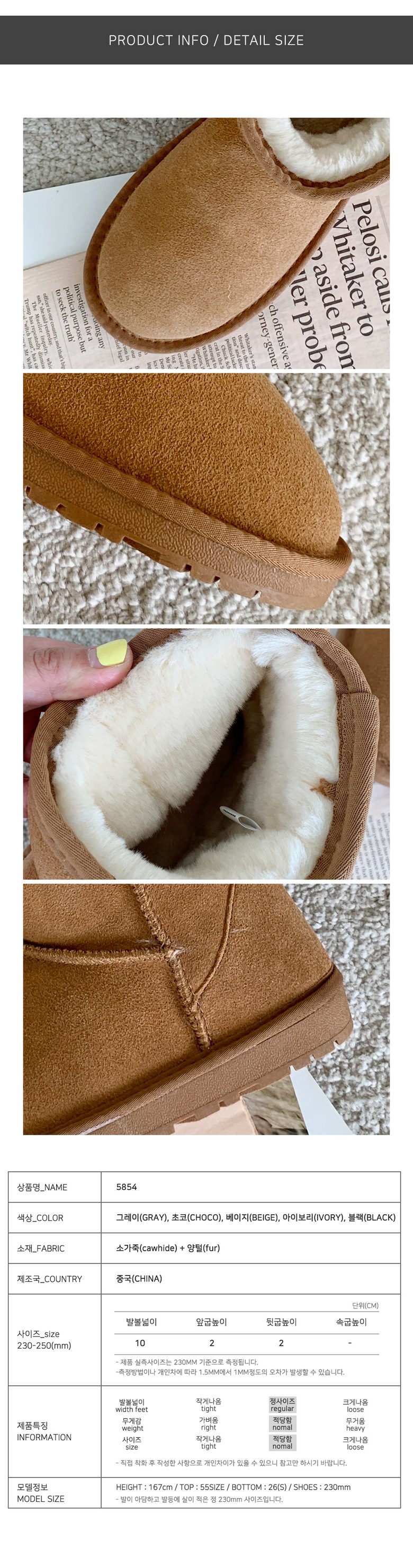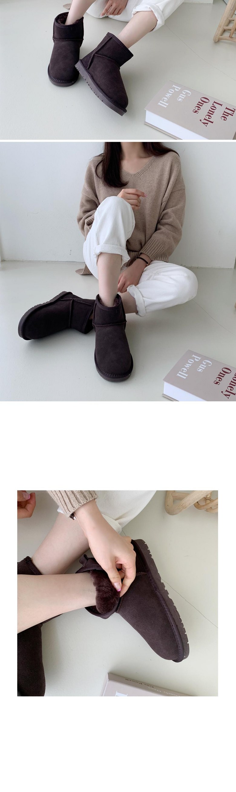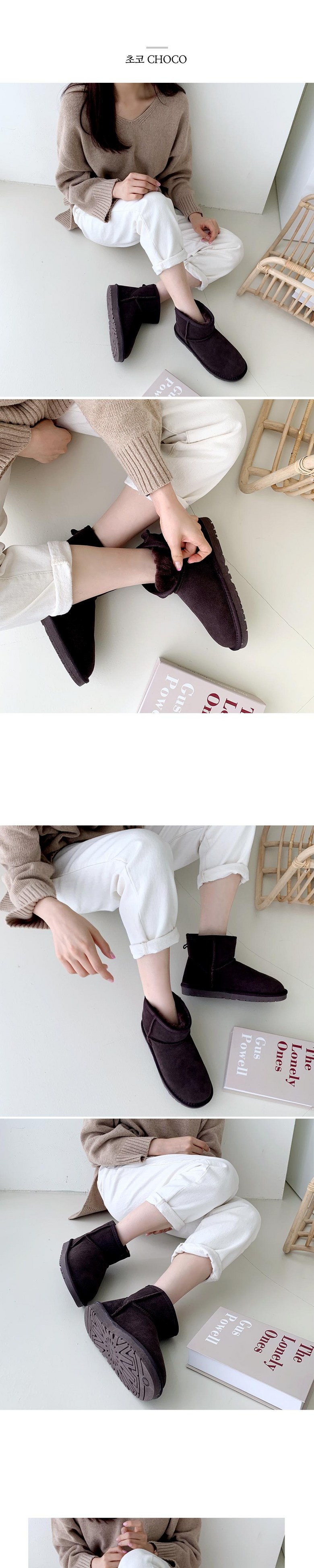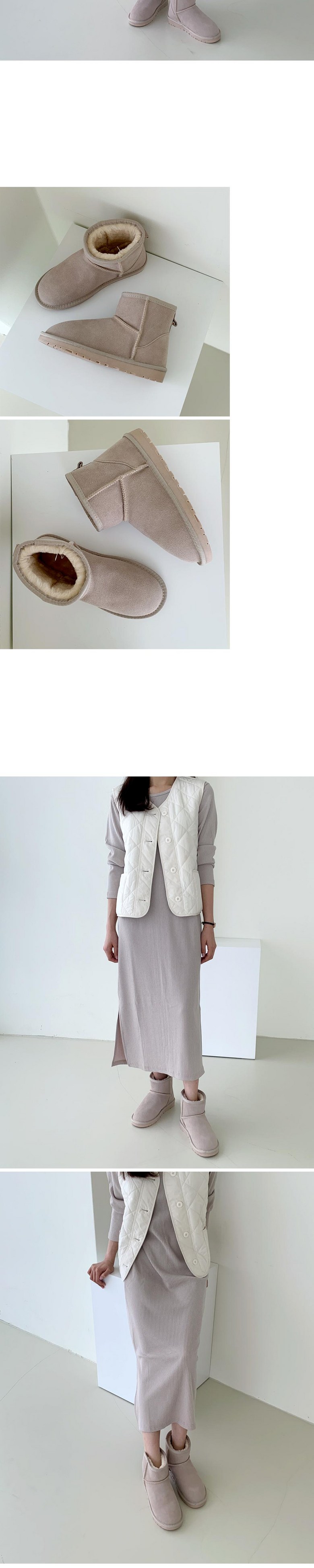 플라틴베이지 천연소가죽 양털 안감 숏 미니 부츠 방한화 (미끄럼방지)