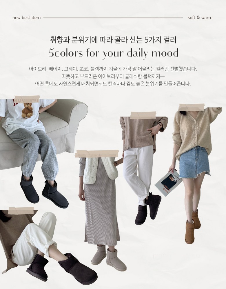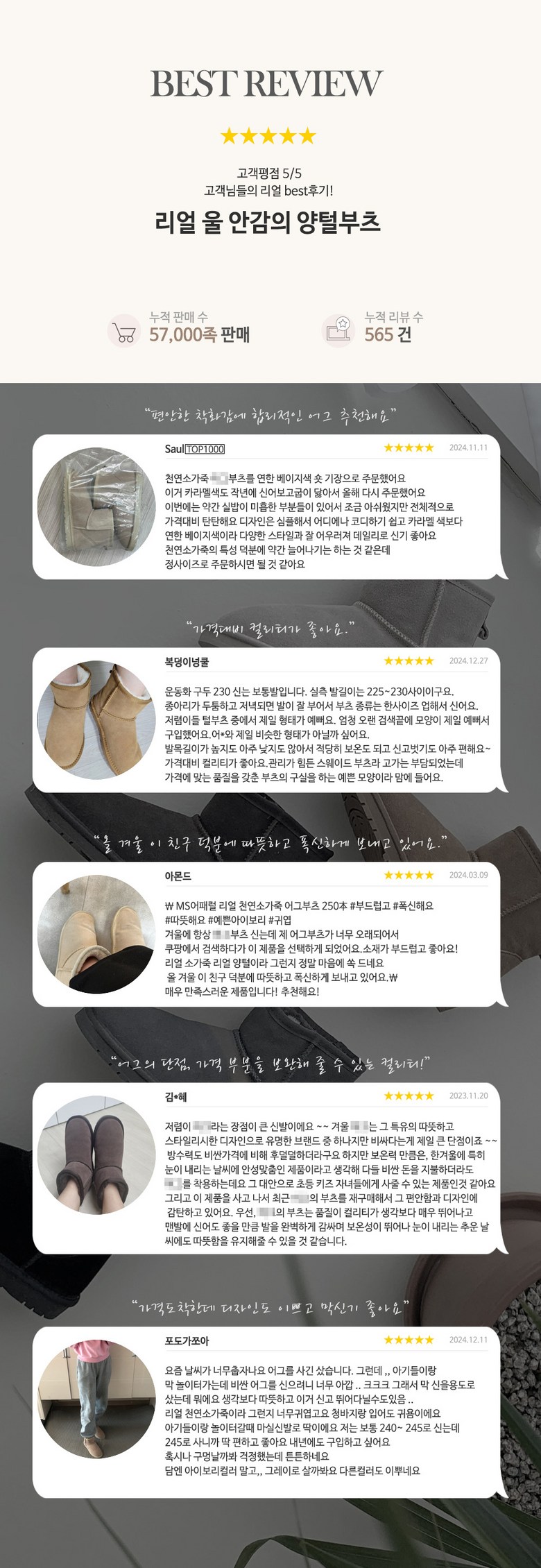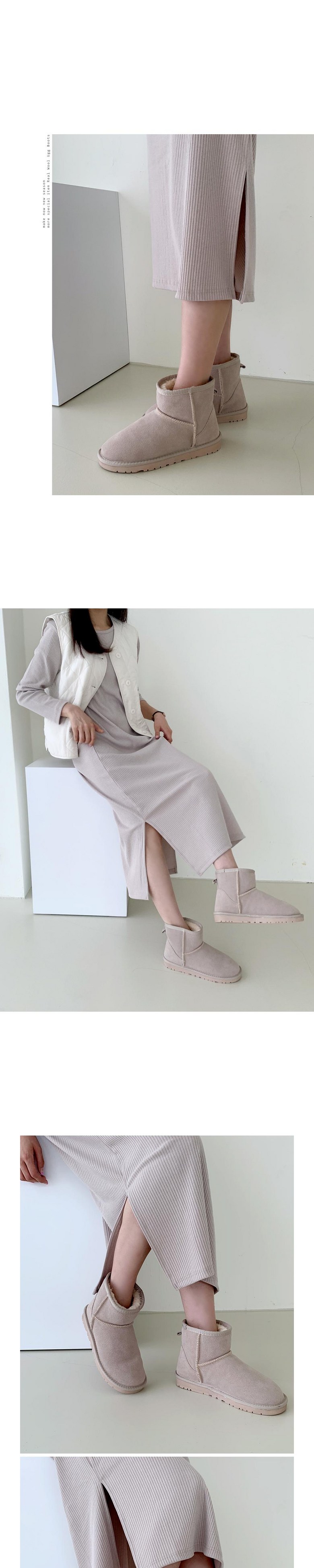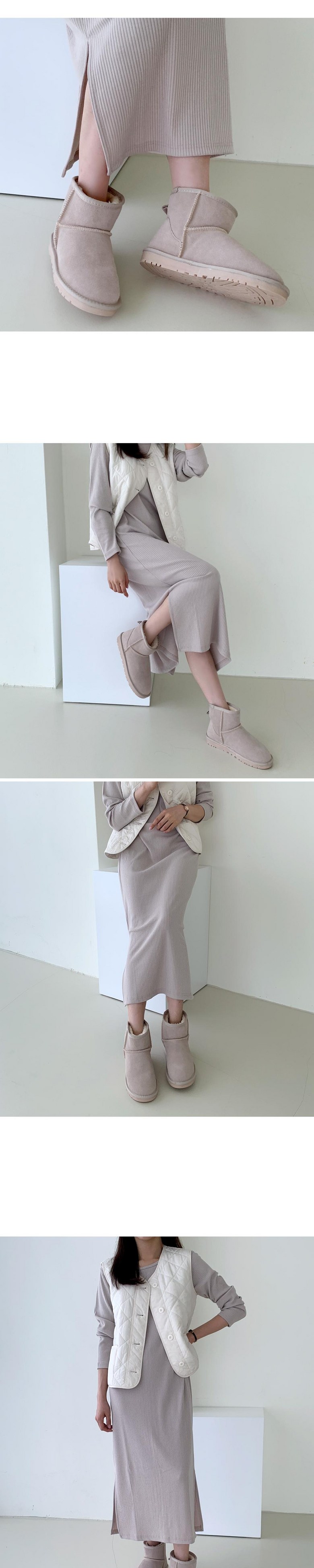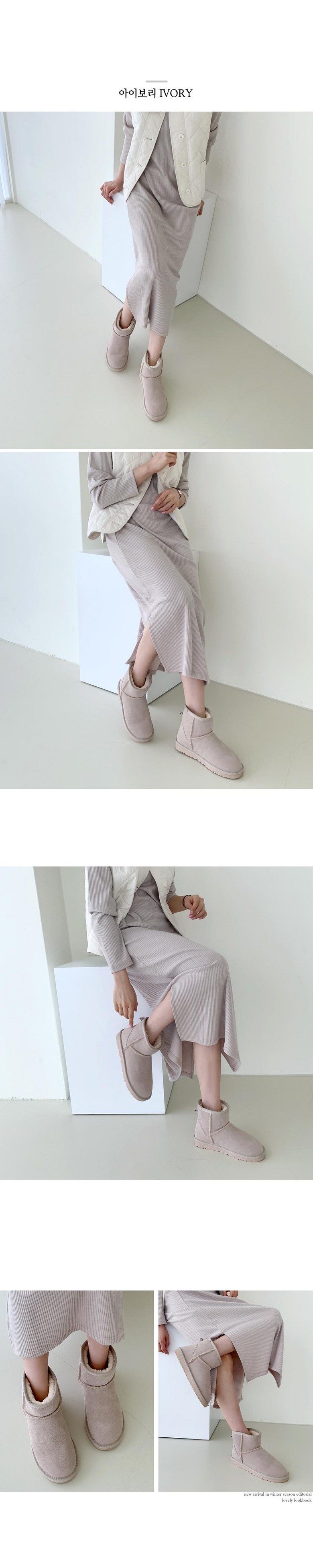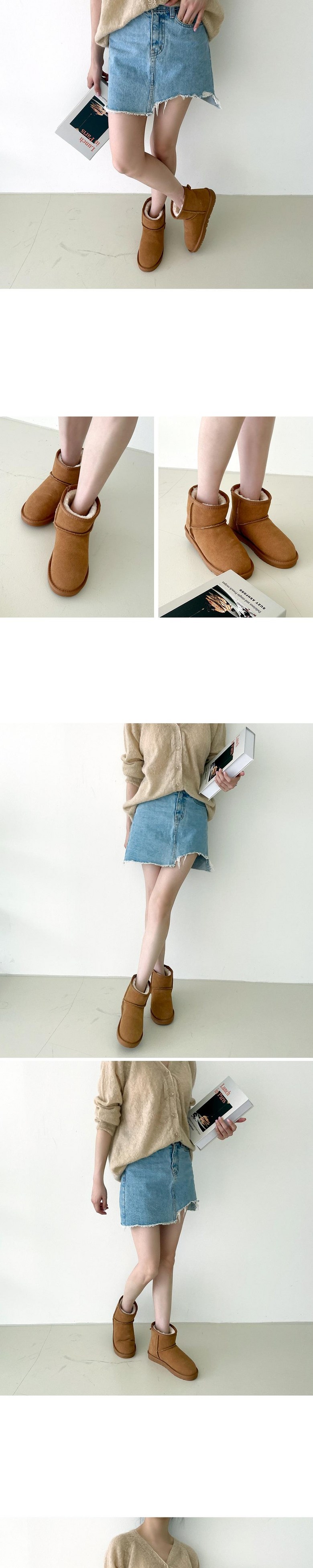 플라틴베이지 천연소가죽 양털 안감 숏 미니 부츠 방한화 (미끄럼방지)