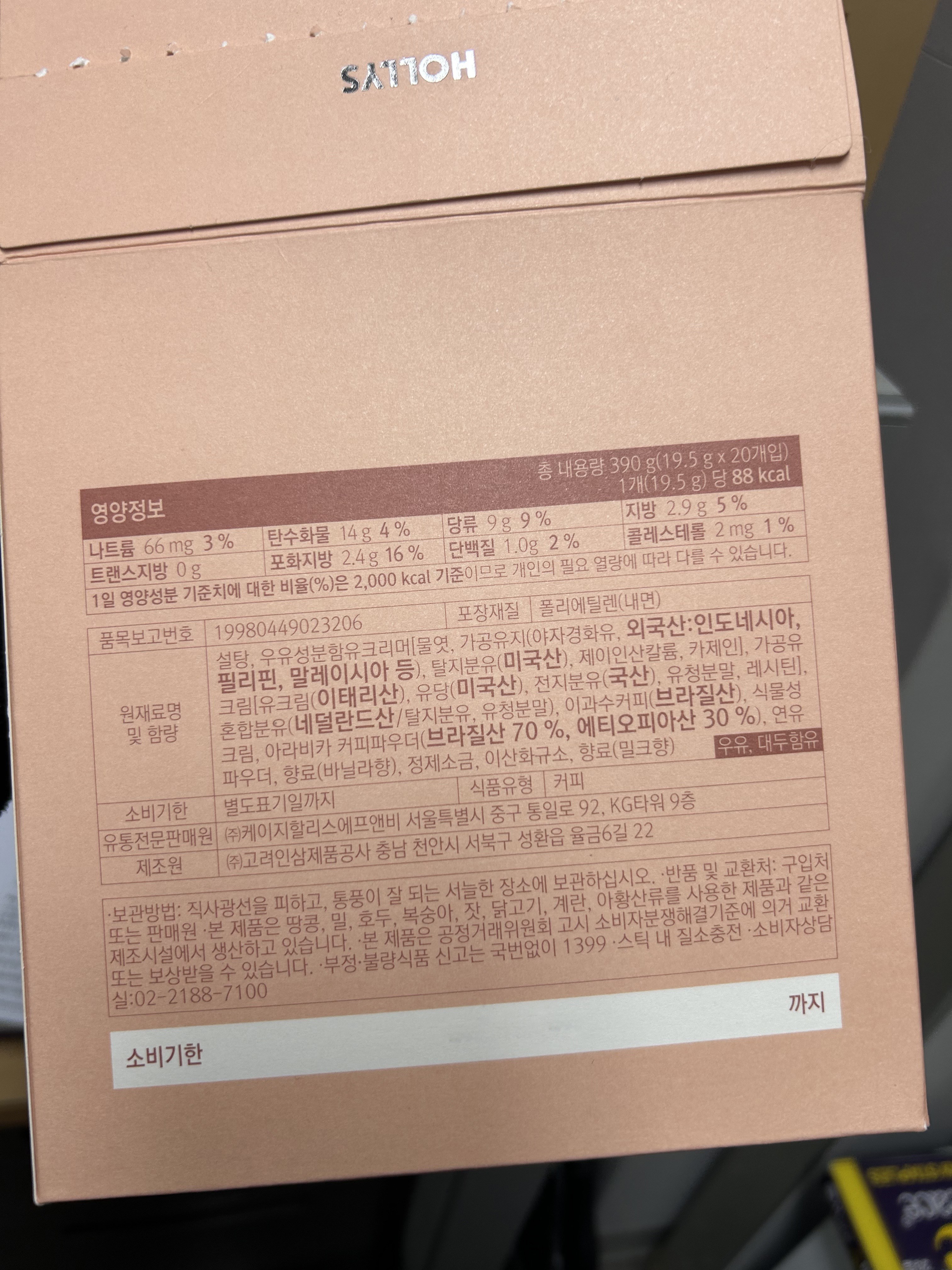 | 제품명 | 할리스 돌체라떼 | 식품의 유형 | 컨텐츠 참조 |