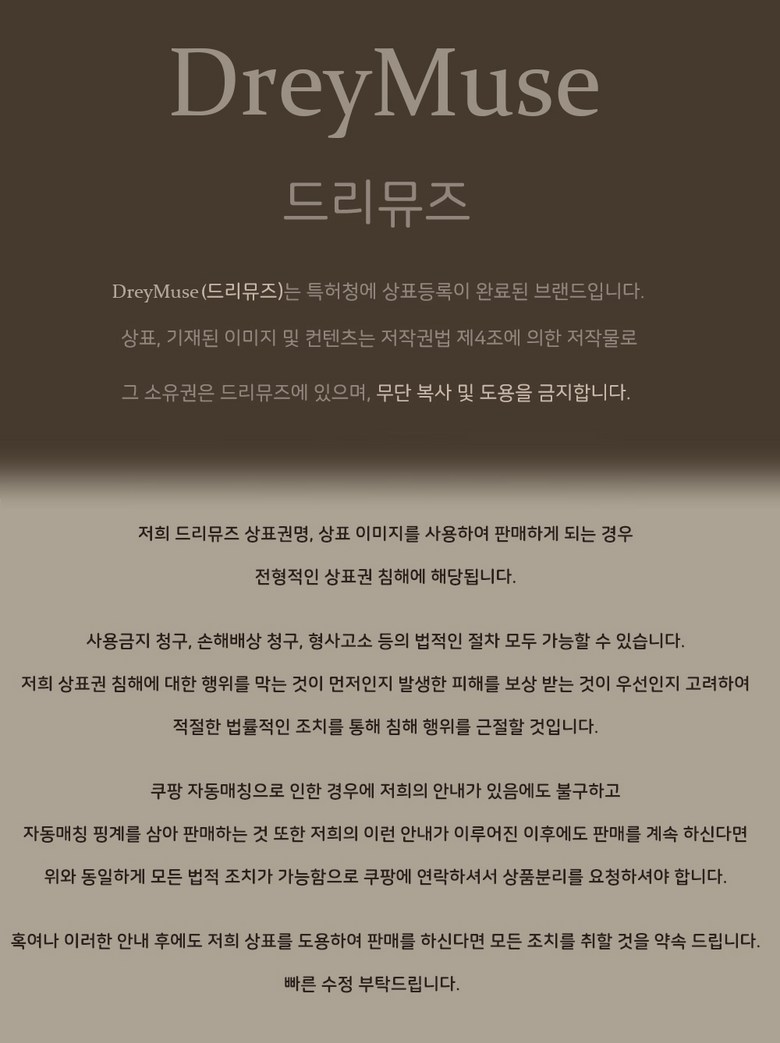 | 치수 | 컨텐츠참고 | 제조자(수입자) | 드리뮤즈 주식회사 |