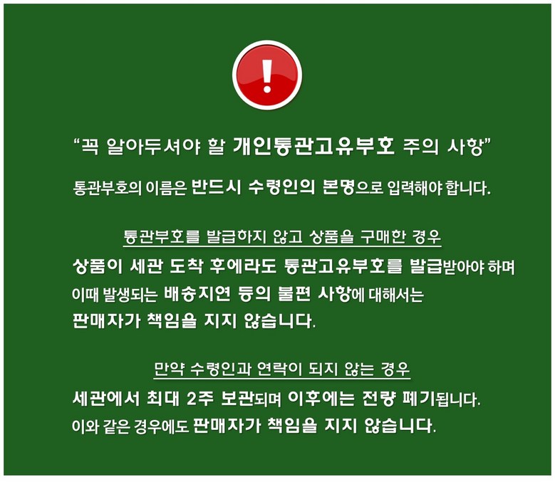 - 원활한 통관을 위해 개인통관고유부호가 필요합니다.