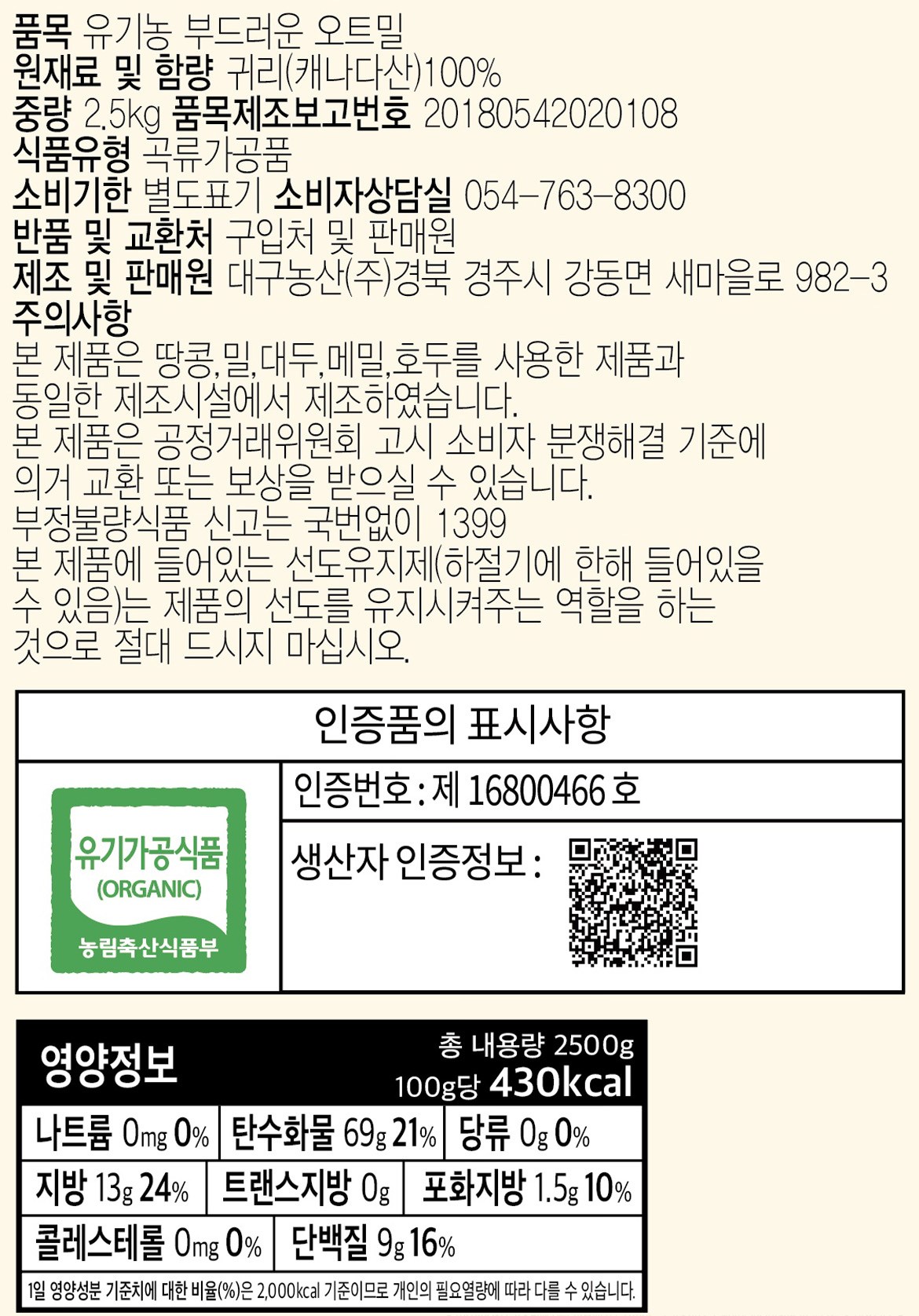 - 유기농/친환경 등: 인증 있음