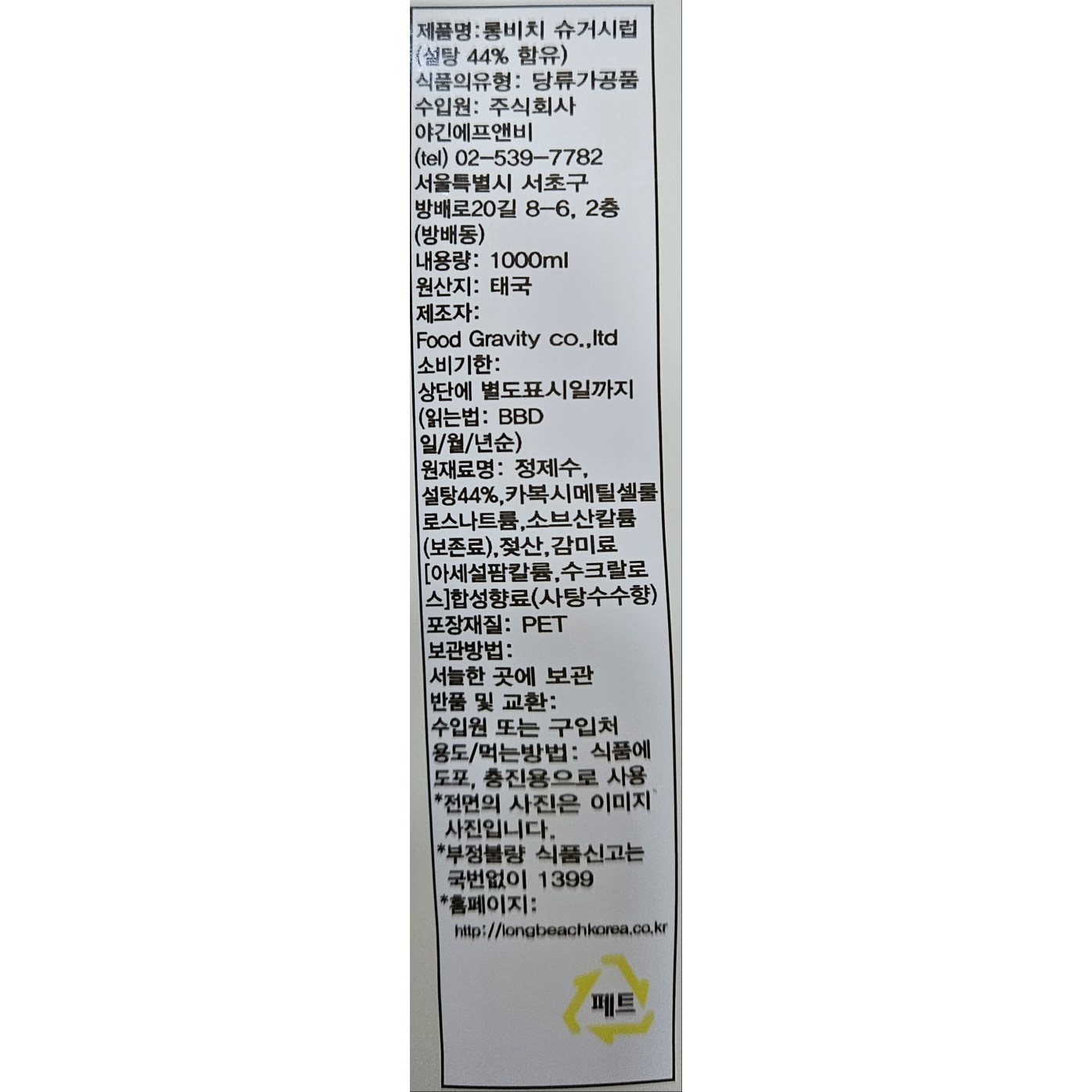 - 용기 타입: 플라스틱병