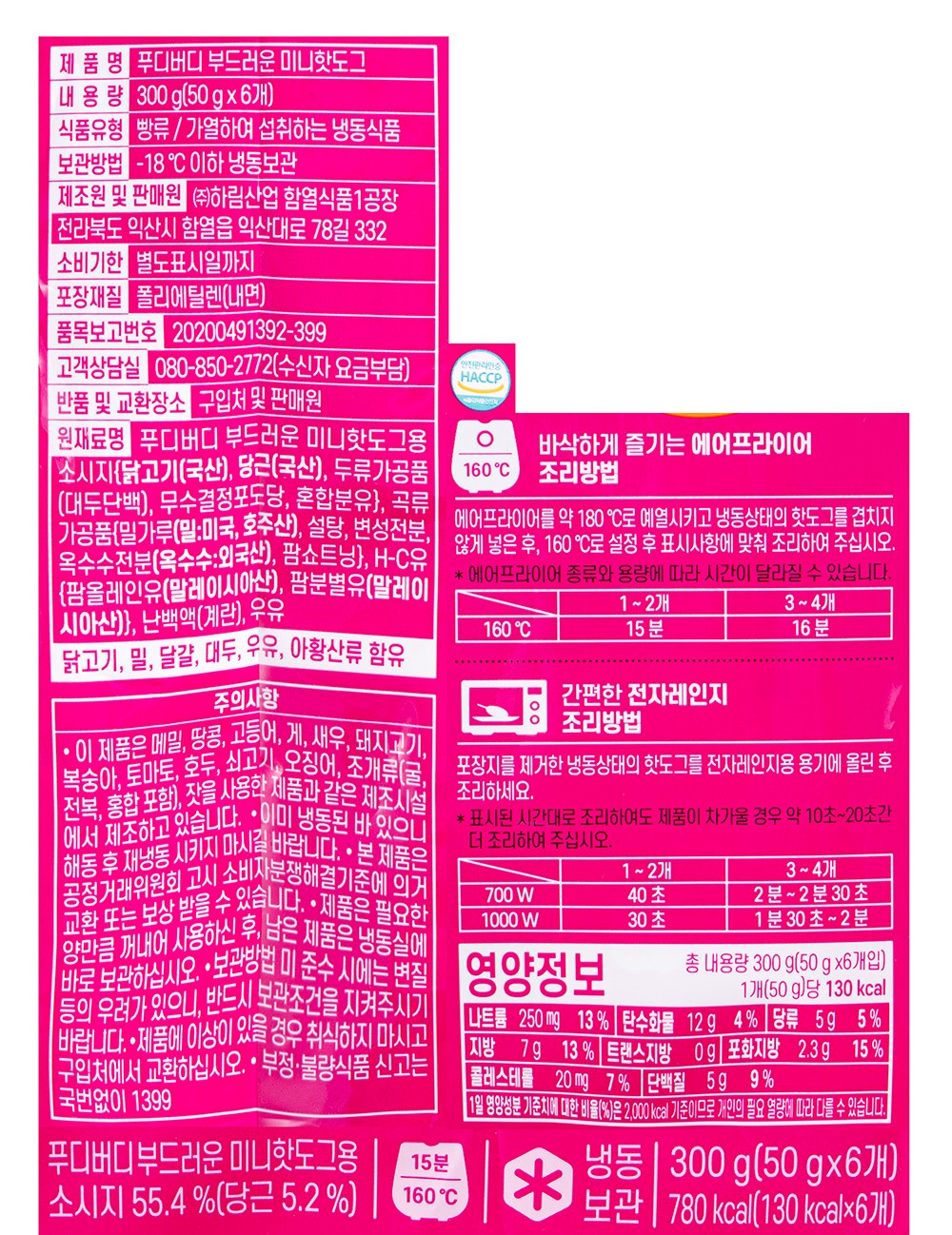 손에 쥐고 즐기기 좋은 간식, 미니 핫도그예요, 겉은 부드러우면서 속은 쫄깃한 식감이 매력적이죠. 한입 먹으면 고소하고 짭조름한 감칠맛으로 입맛을 사로잡는답니다. 에어프라이어, 전자레인지로 조리할 수 있어 간편해요. 따뜻하게 조리 후 소스를 곁들여 즐겨보세요.