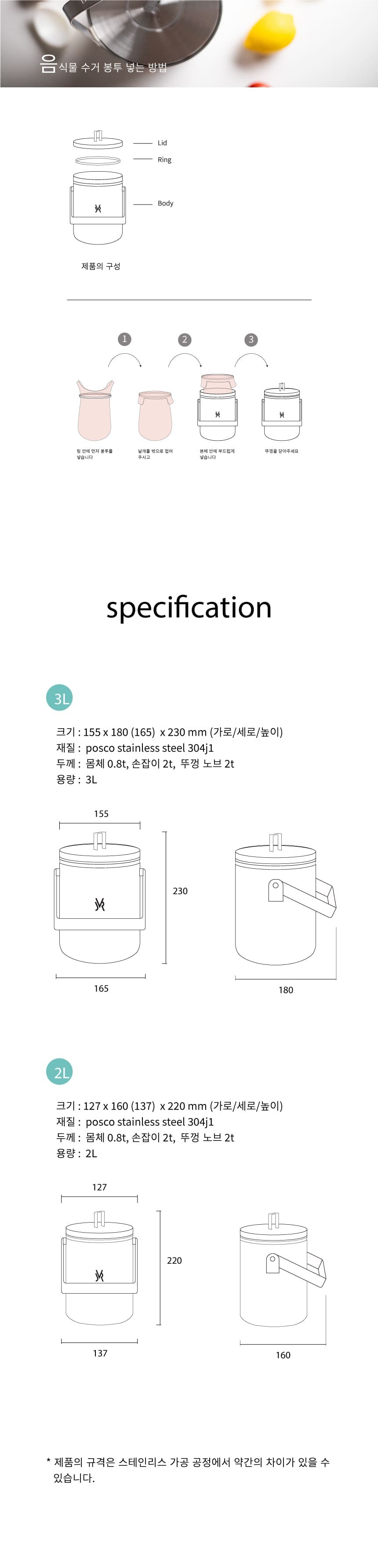 | 품명 및 모델명 | JVR 시그니처 스텐 음식물쓰레기통 2L 없음 1개 2L | 재질 | 컨텐츠 참조 |