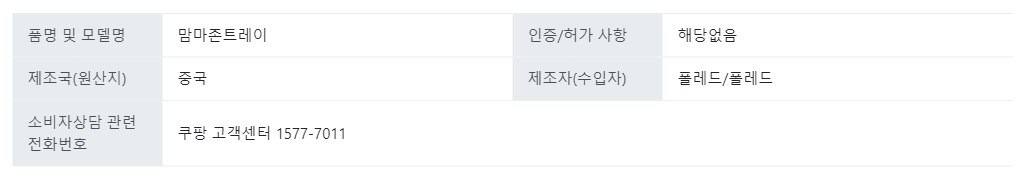 | 출시년월 | 업체미제공 | 제조자(수입자) | Dongguan Meixing Mold Co.,Ltd / 주식회사 폴레드 |
