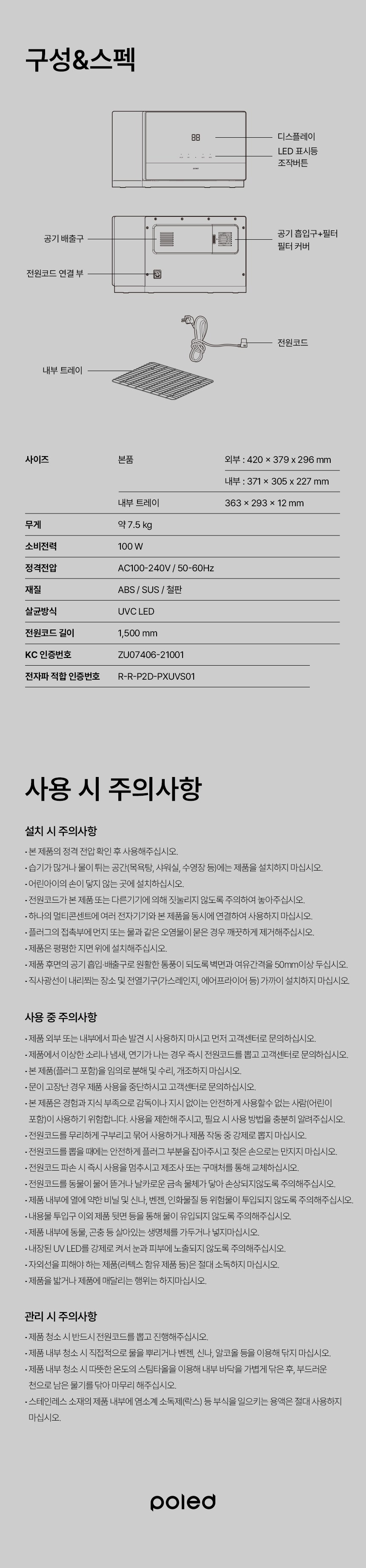| 품명 및 모델명 | 폴레드 픽셀 젖병살균기 / PXUVS01 | KC 인증정보 | ZU07406-21001, R-R-P2D-PXUVS01 |