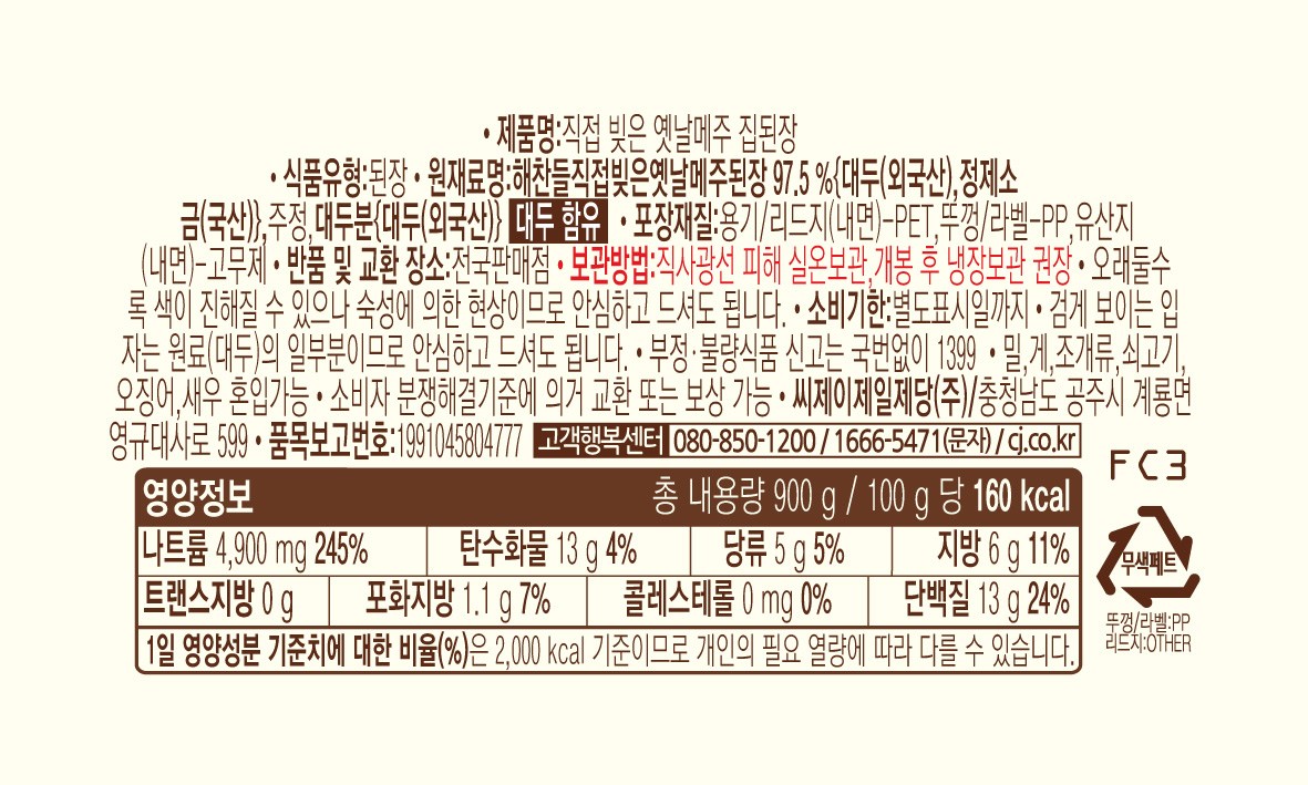 | 포장단위별 내용물의 용량(중량), 수량 | 900g* 4개 | 원재료명 및 함량 | 컨텐츠 참조 |