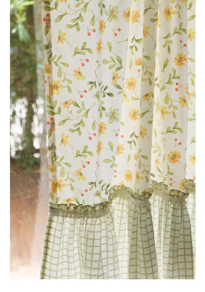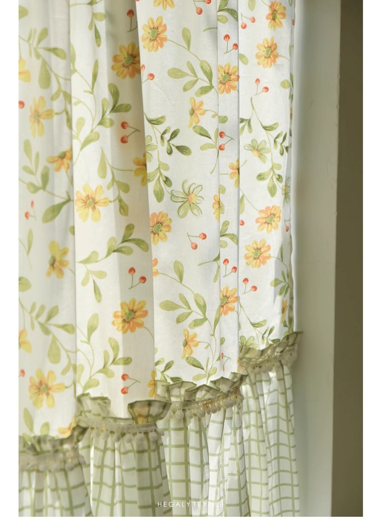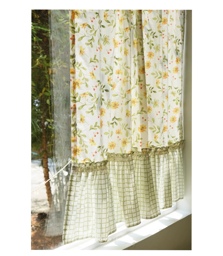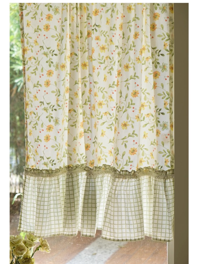 HAROO 정원 원예 쉬폰 잔꽃 이쁜 얇은 커튼 2P