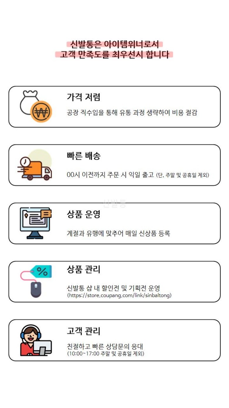 - ㆍ모니터 해상도의 차이로 인해 색상이나 이미지가 실제와 달라, 고객이 단순 변심으로 교환/반품을 무료로 요청하는 경우