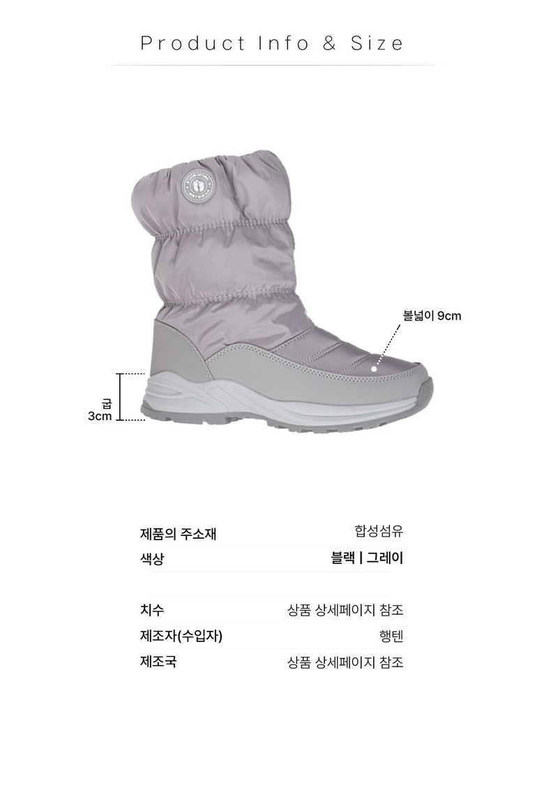 | 제품의 주소재(운동화인 경우에는 겉감,안감을 구분하여 표시) | 합성섬유 + 합성 피혁퍼(뽀글이) | 색상 | 블랙,그레이 |