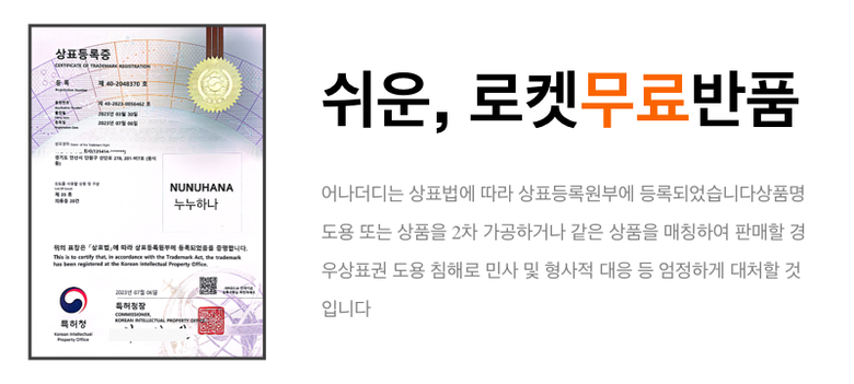 - ㆍ모니터 해상도의 차이로 인해 색상이나 이미지가 실제와 달라, 고객이 단순 변심으로 교환/반품을 무료로 요청하는 경우