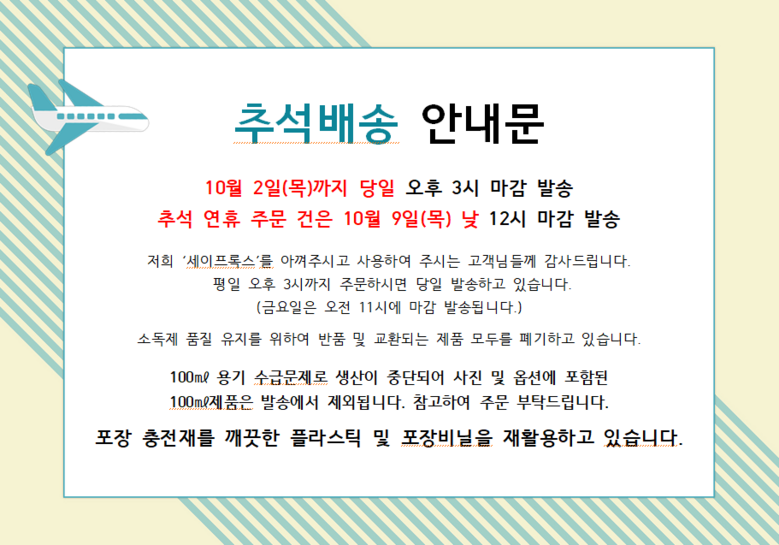 | 배송방법 | 순차배송 | 배송비 | 무료배송 · 도서산간 추가 배송비 - 제주 지역: 3,000원 - 도서산간 지역: 6,000원 |