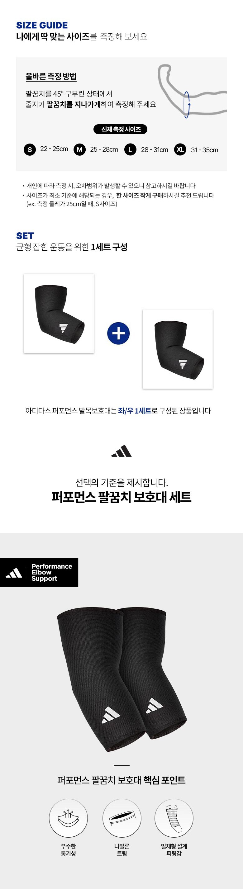 | 품명 및 모델명 | 아디다스 퍼포먼스 팔꿈치보호대 세트 블랙/화이트 M | KC 인증정보 | 해당없음 |