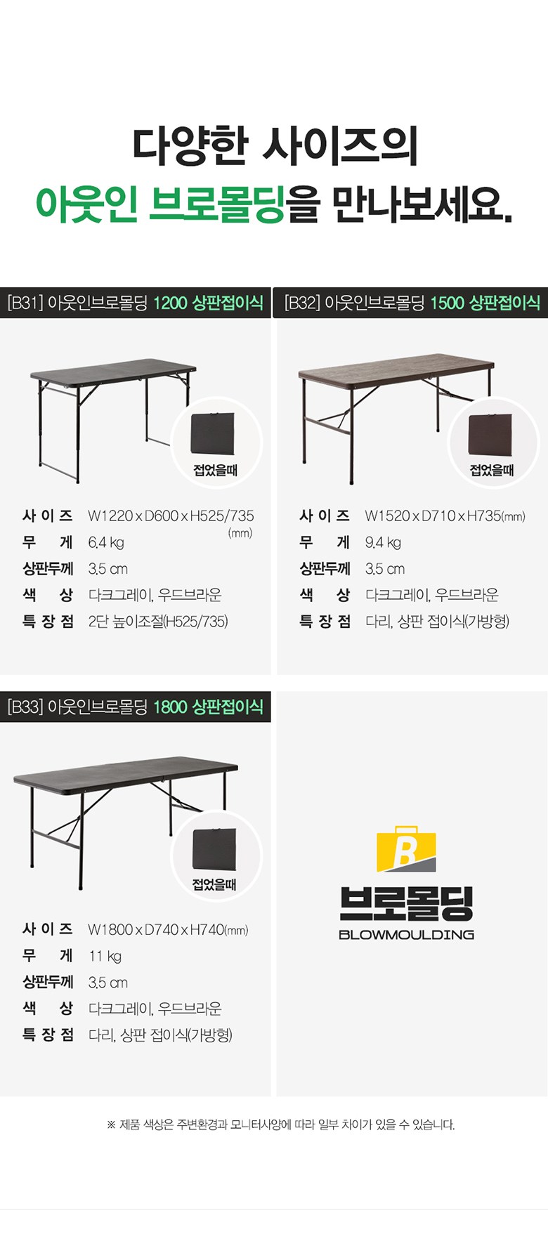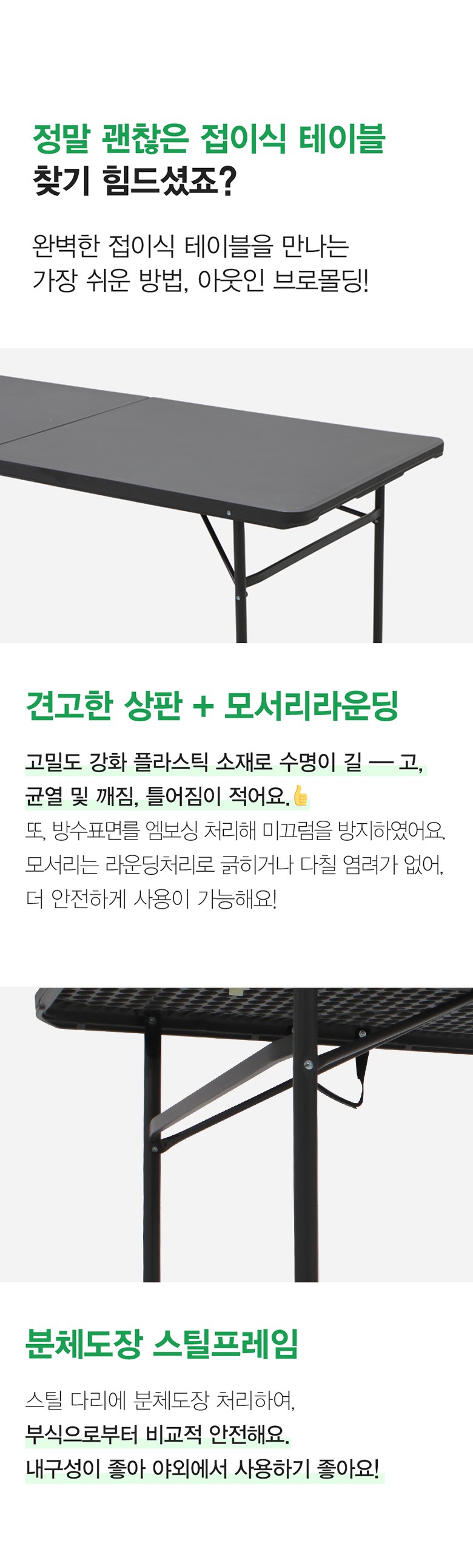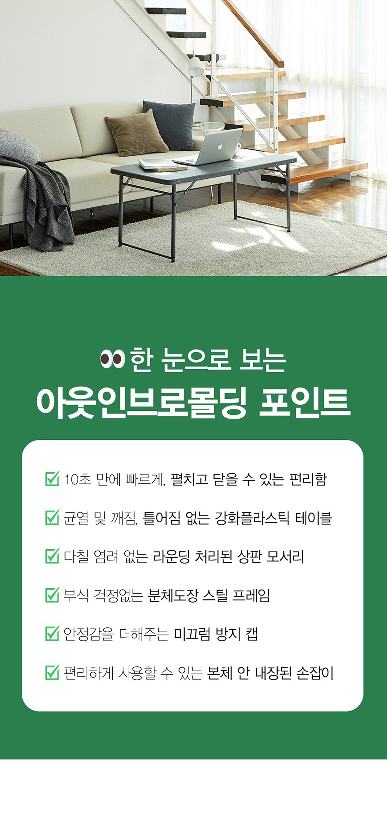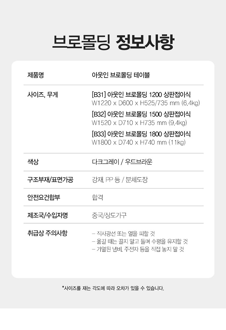 | 품명 | 아웃인 접이식 브로몰딩테이블 1500 | KC 인증정보 | 해당없음 |