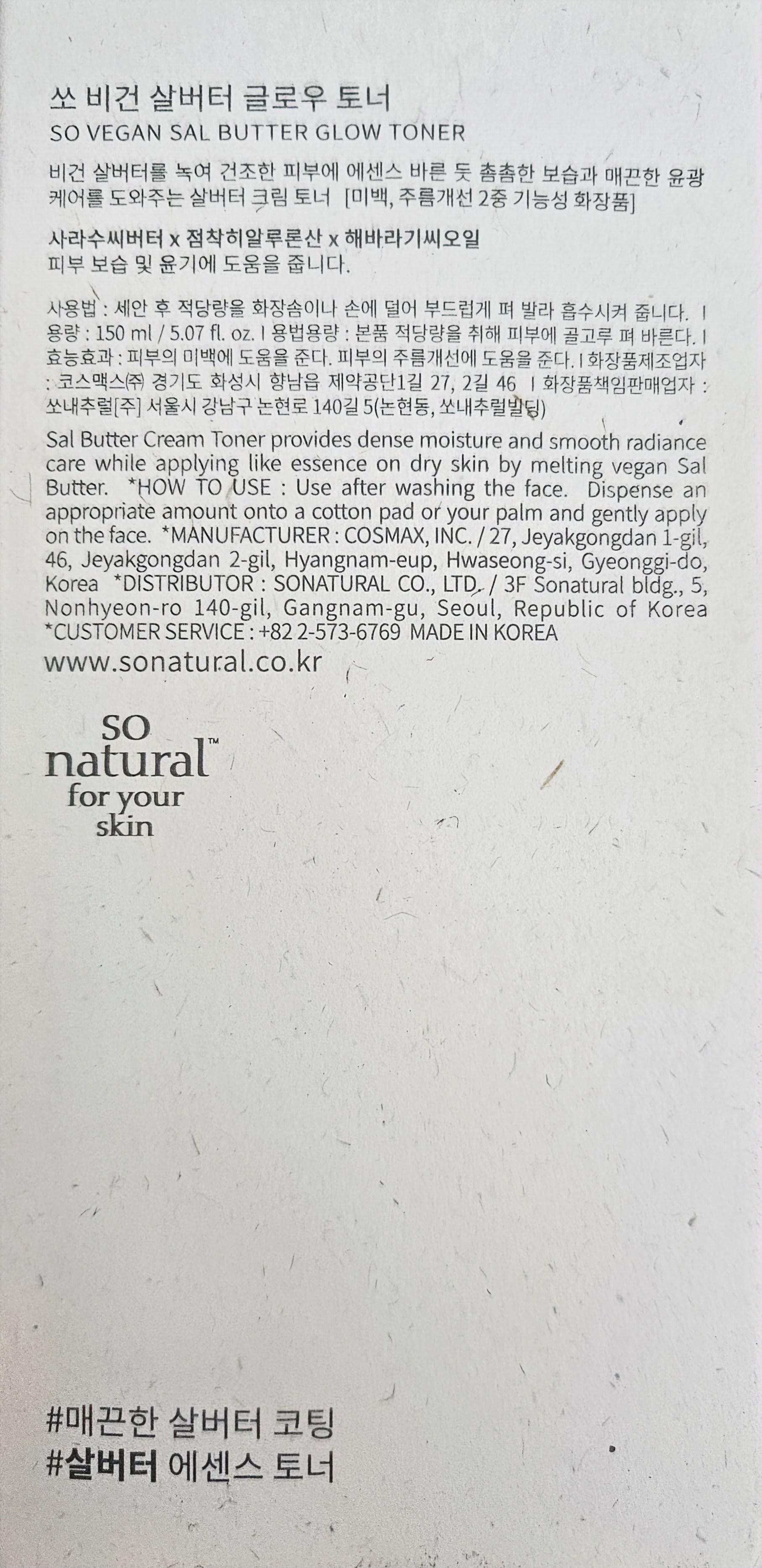 | 화장품제조업자, 화장품책임판매업자 및 맞춤형화장품판매업자 | 코스맥스(주) / 쏘내추럴(주) | 제조국 | 대한민국 |