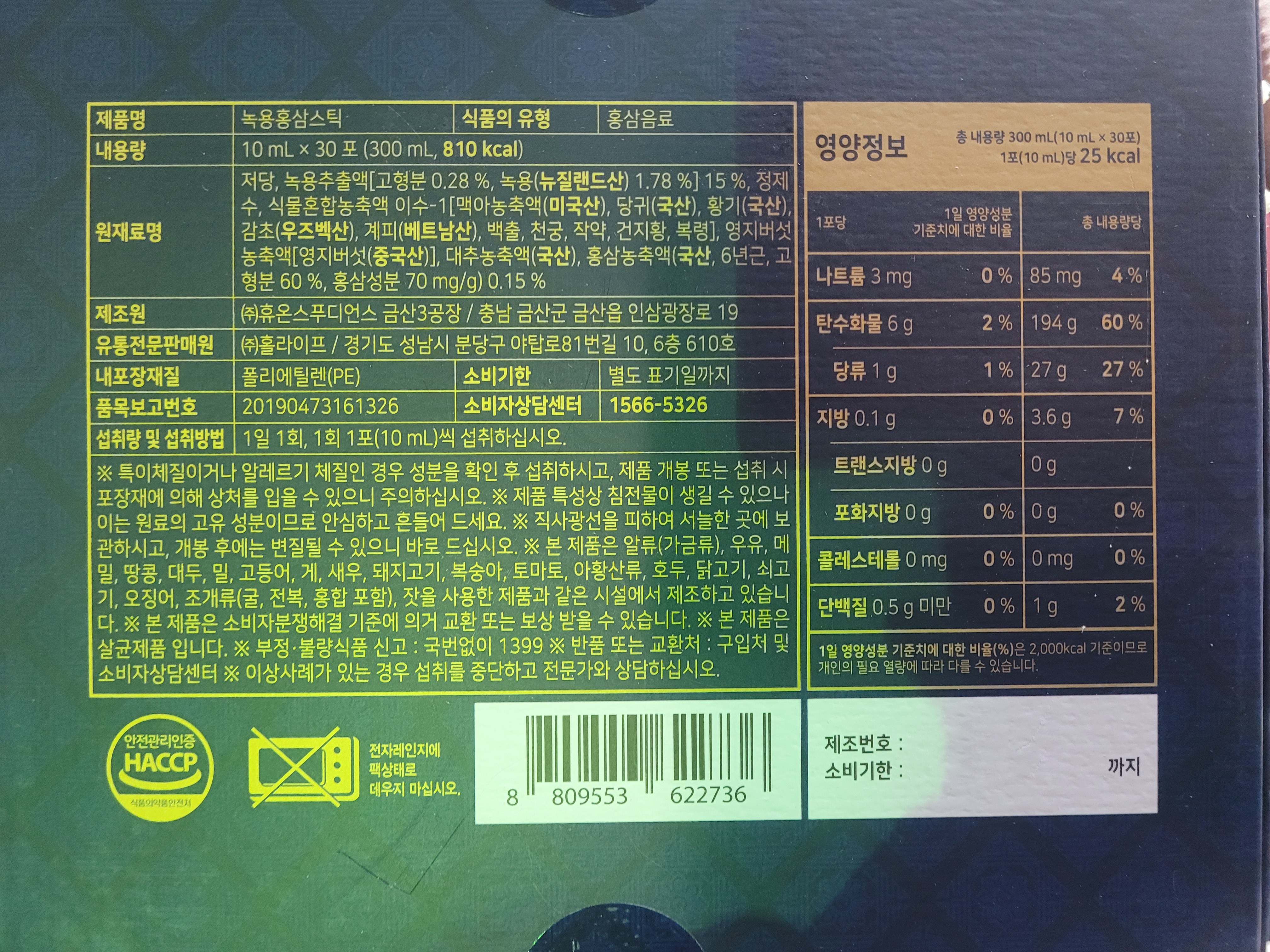 | 생산자 및 소재지 | 컨텐츠 참조 | 제조연월일, 소비기한 또는 품질유지기한 | 소비기한(또는 유통기한) : 2027년 10월 26일 이거나 그 이후인 상품 제조년월일 : 2025년 10월 25일 이후인 제조상품 |