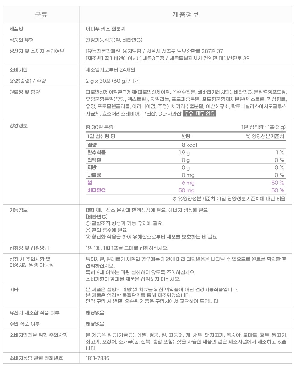 - 건강기능식품: 인증 있음