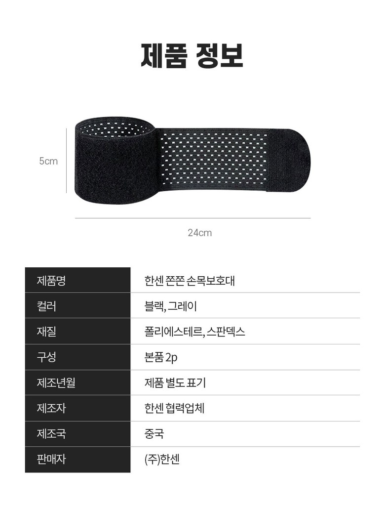| 품명 및 모델명 | 한센 쫀쫀 손목보호대 | KC 인증정보 | 전기용품 및 생활용품 안전관리법에 따른 안전인증,안전확인,공급자적합성확인대상 제품에 한함 |