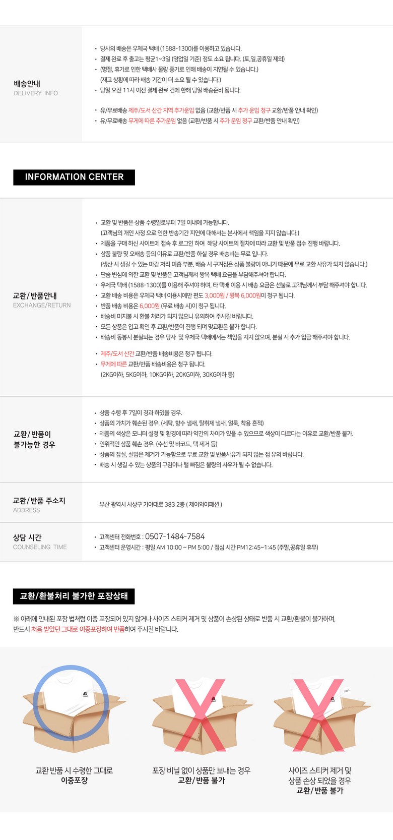 - ㆍ교환/반품에 관한 일반적인 사항은 판매자가 제시사항보다 관계법령이 우선합니다.
