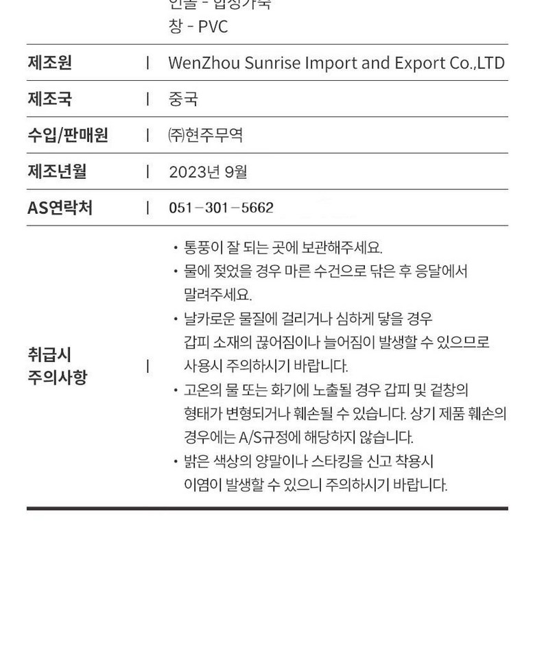 | 제조국 | 상품 상세페이지 참조 | 취급시 주의사항 | 상품 상세페이지 참조 |