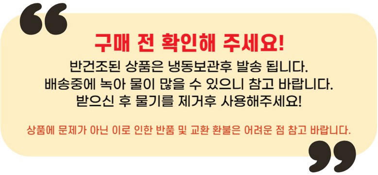 | 배송방법 | 신선/냉장/냉동 | 배송비 | 무료배송 - 도서산간 지역 배송불가 |