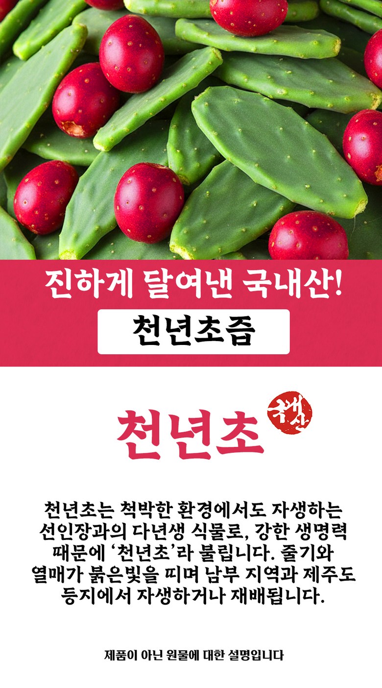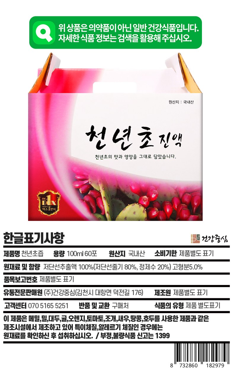 | 제품명 | 천년초엑기스 | 식품의 유형 | 상품 상세페이지 참조 |