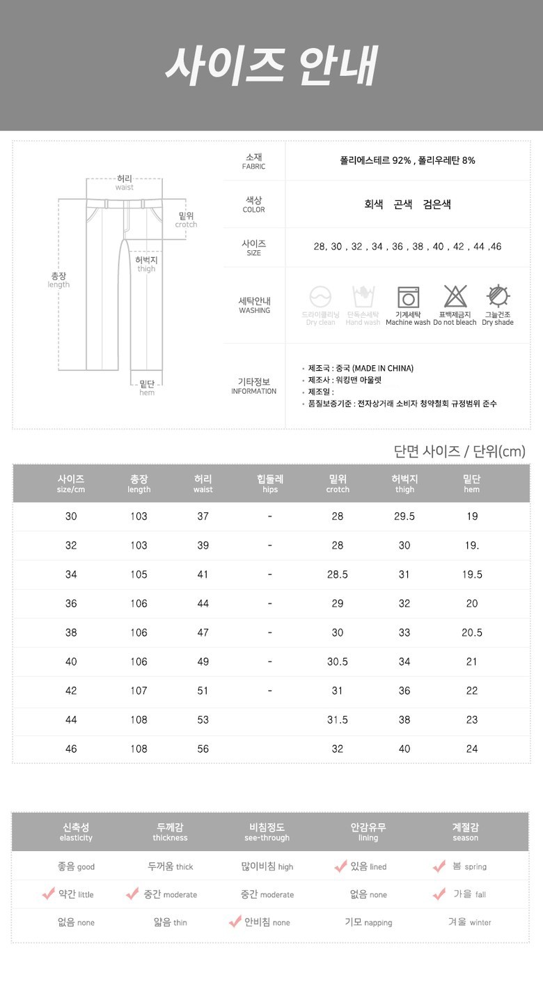 | 제조국 | 상품 상세페이지 참조 | 세탁방법 및 취급시 주의사항 | 상품 상세페이지 참조 |